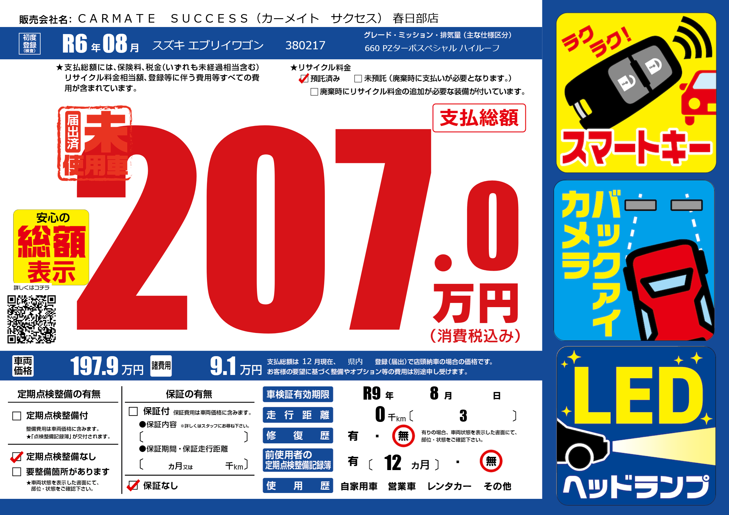 | 車名 | スズキ エブリイワゴン 380217 | グレード ミッション 排気量 |