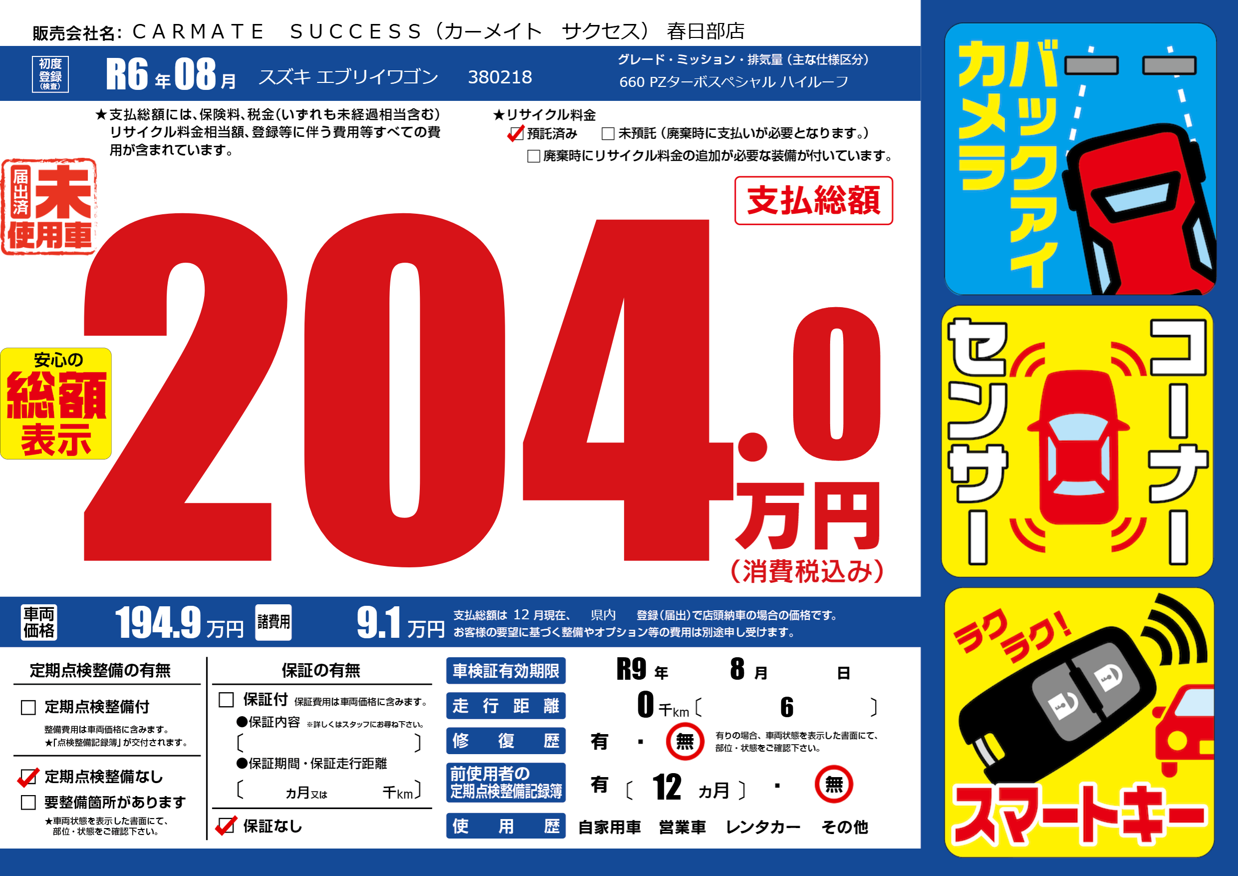 なし | 車検制限 | R9年8月---月 |