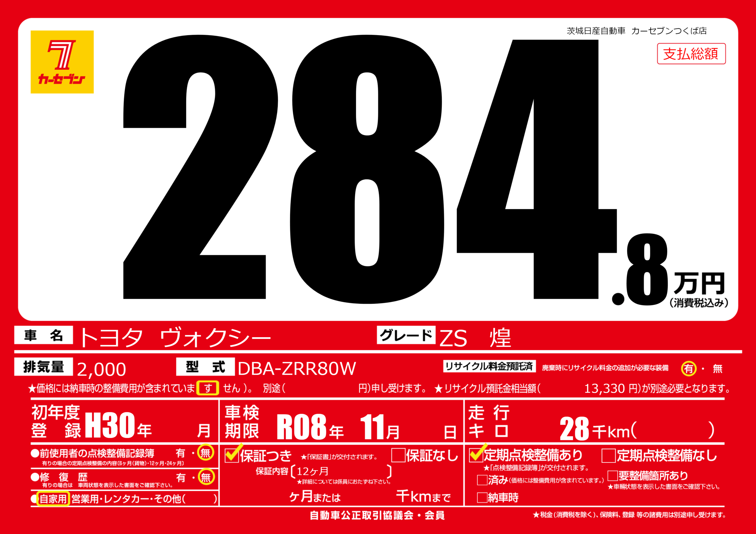 | 走行キロ | 2.8万km | 初年度登録 | H30年---月 |
