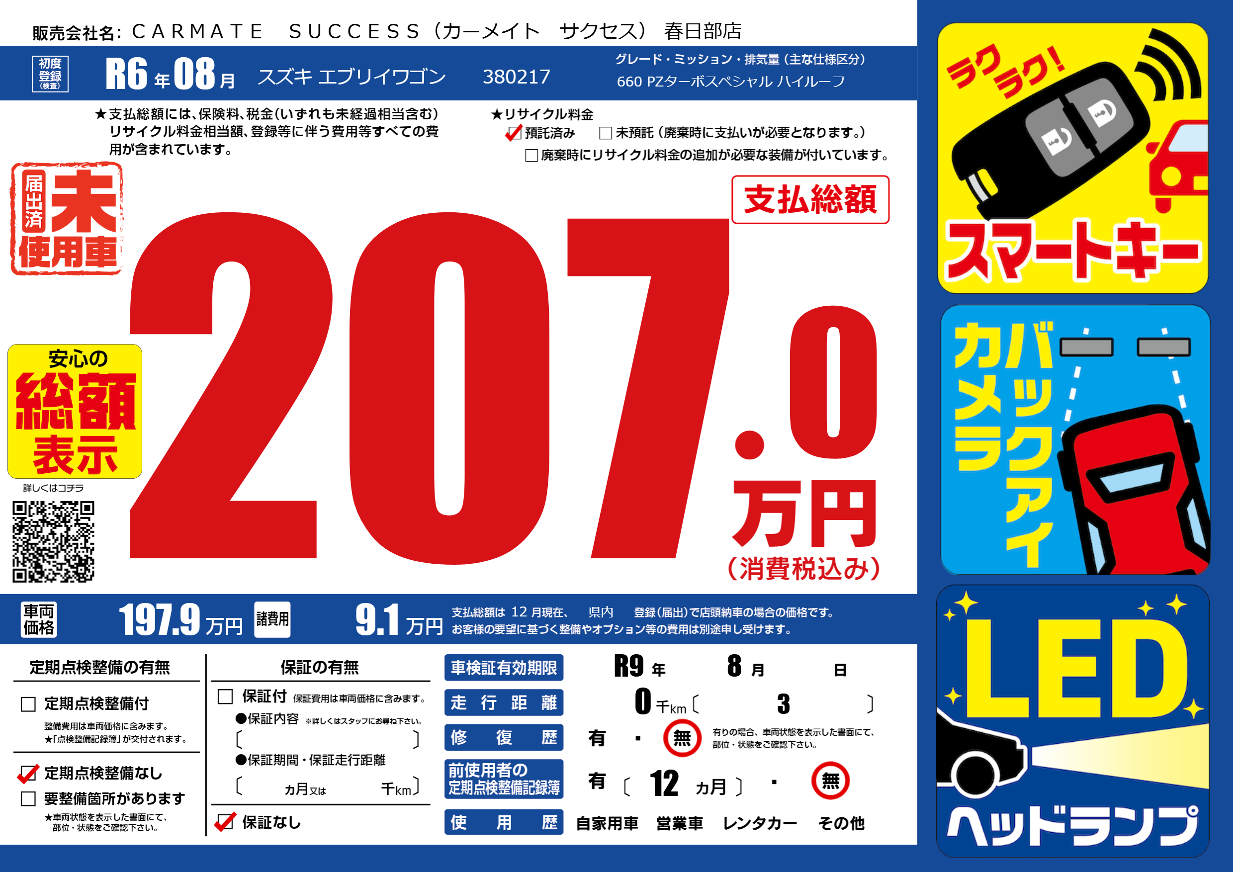 | 走行キロ | - | 初年度登録 | R6年08月 |