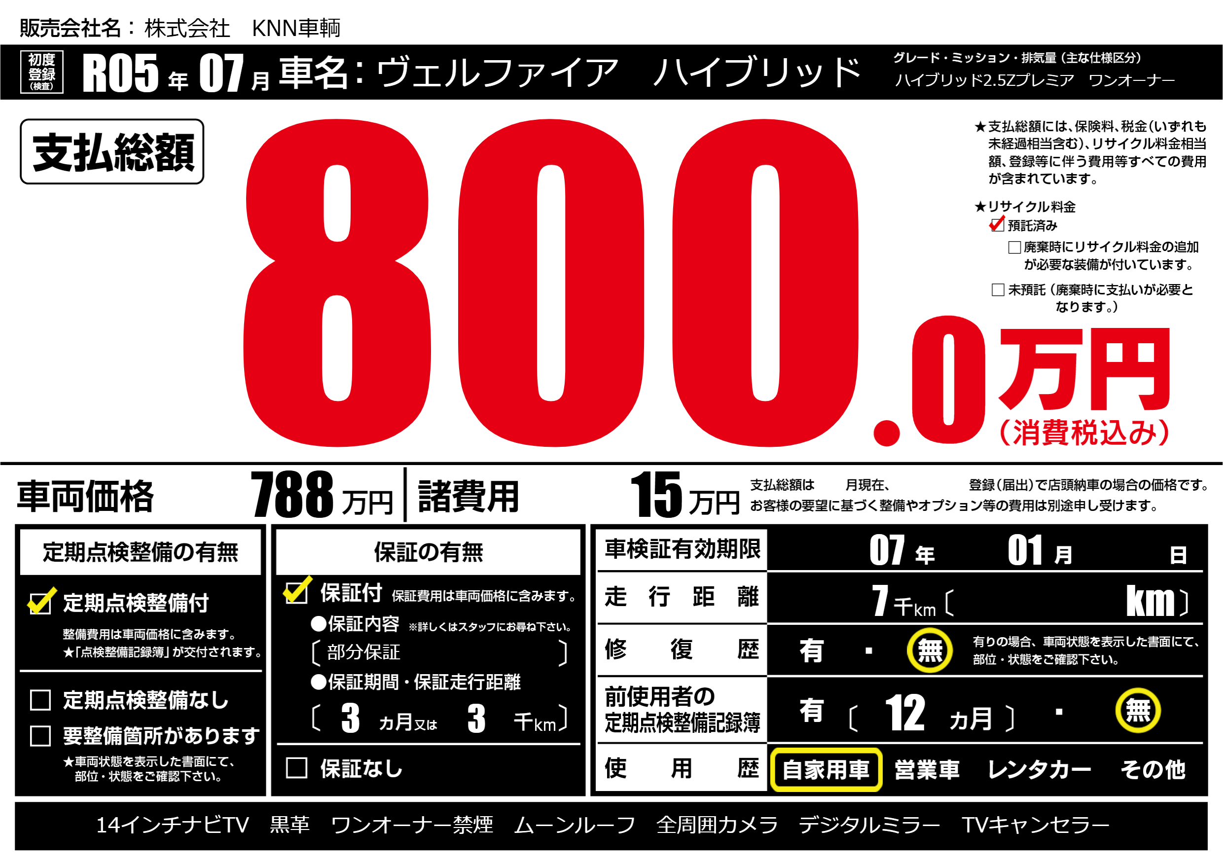 | 車名 | ヴェルファイア ハイブリッド | グレード ミッション 排気量 |