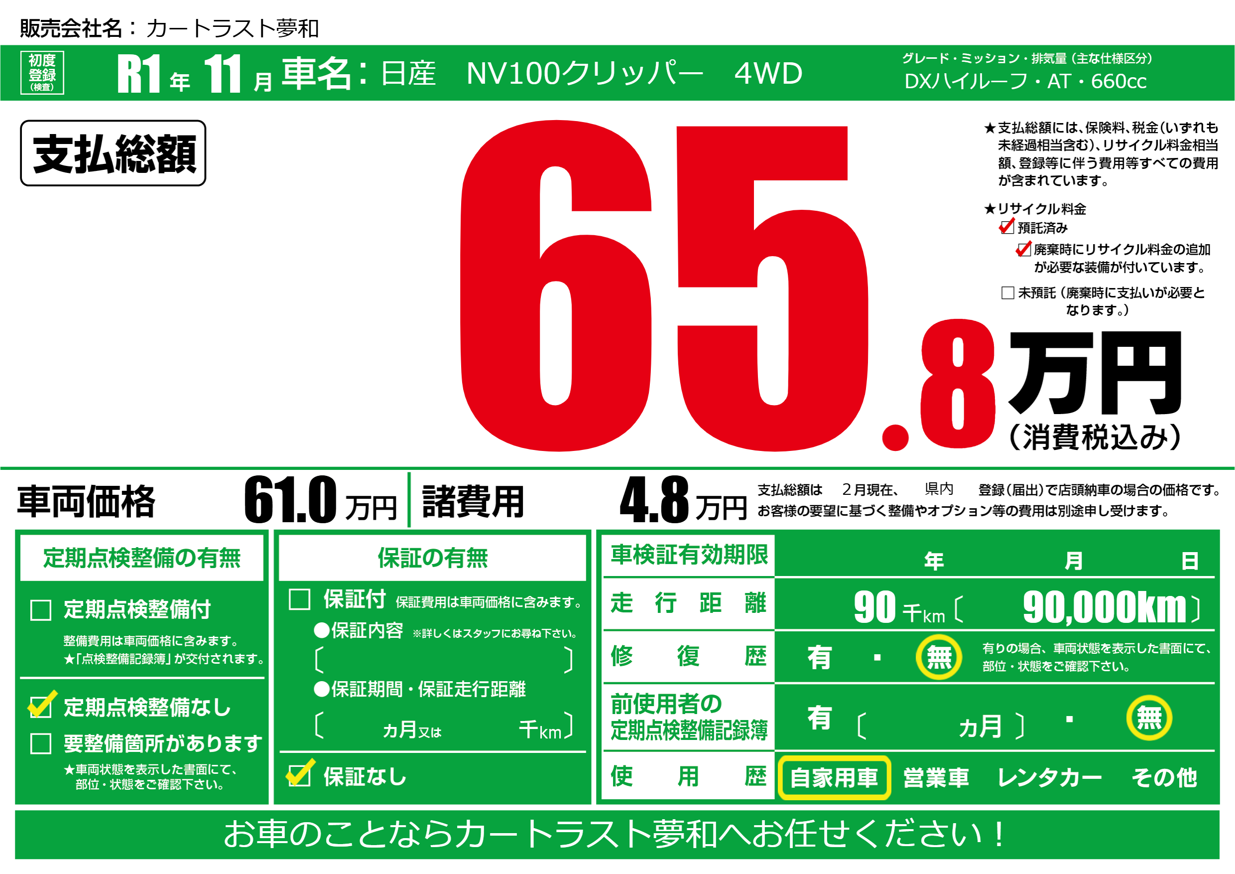 | 定期点検整備 | 定期点検整備なし | ||