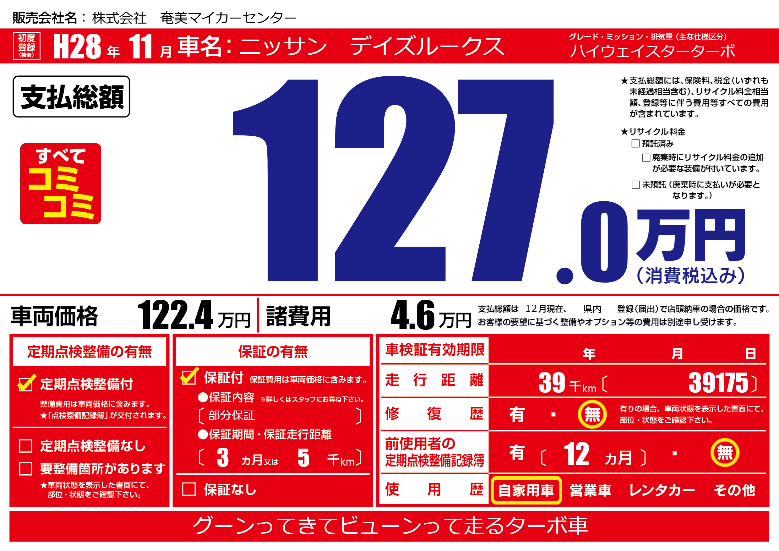 | 走行キロ | 3.9万km | ||