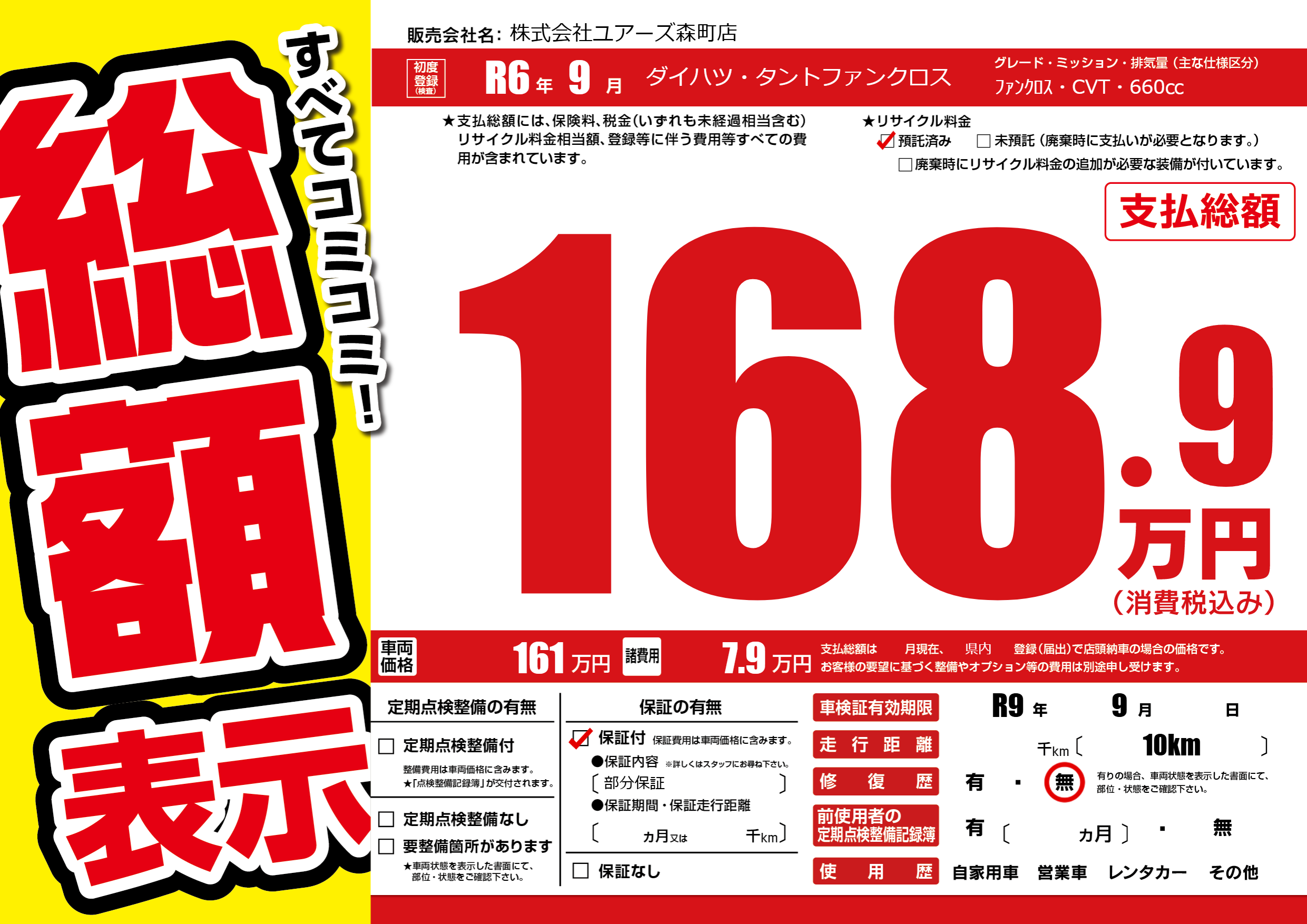 なし | 車検制限 | R9年9月---月 |