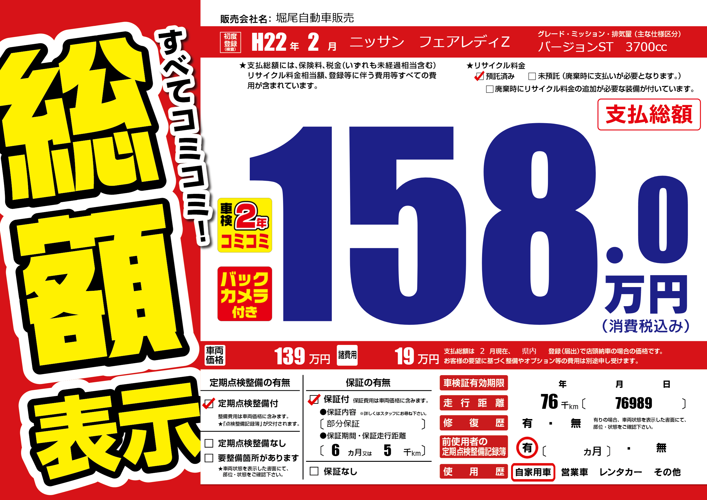 | 定期点検整備 | 定期点検整備あり | ||