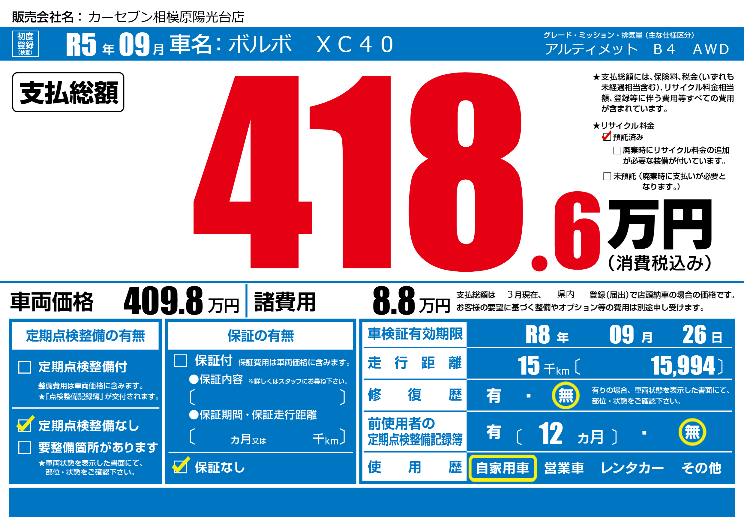 | リサイクル料金 預託済 |