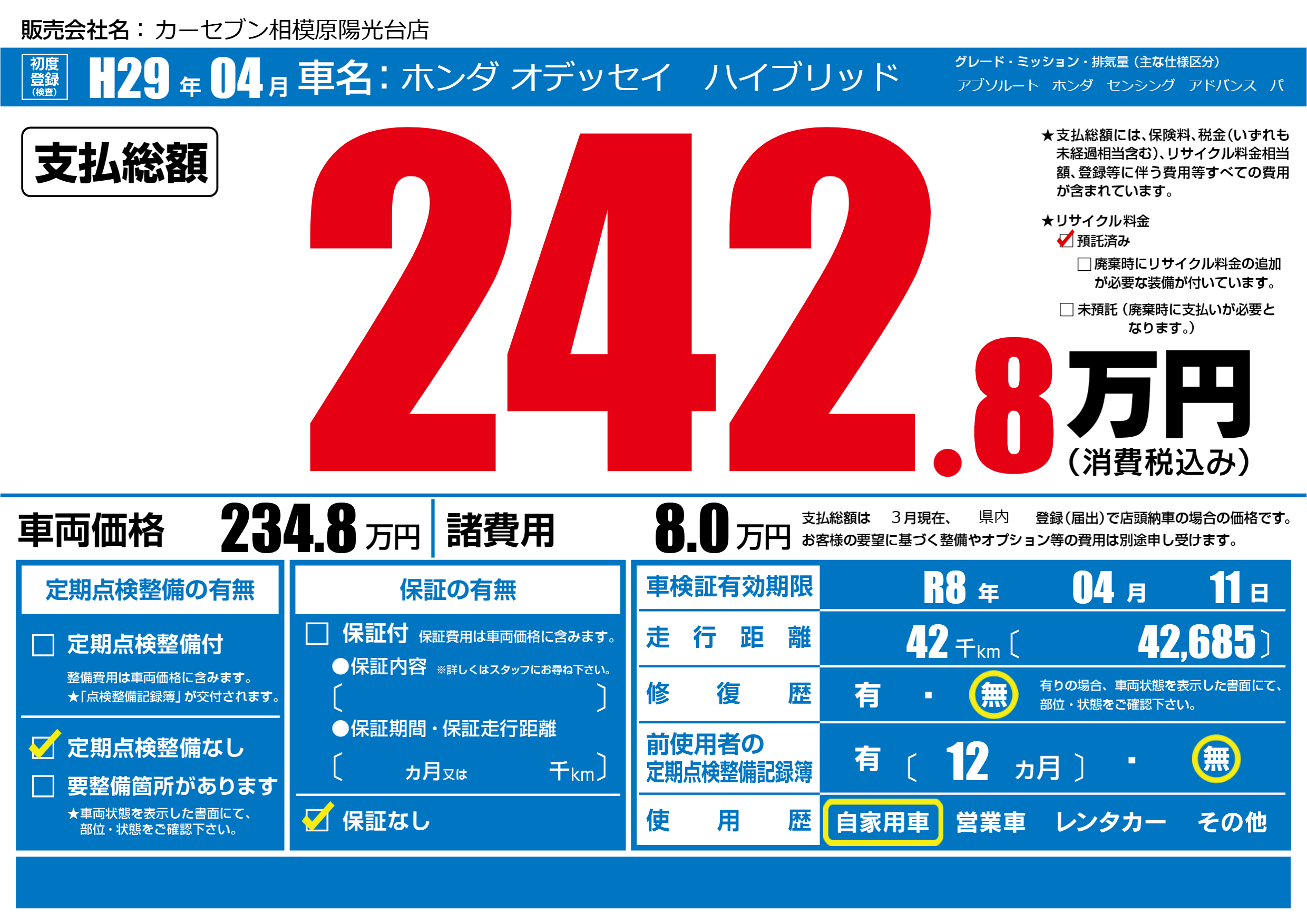 | リサイクル料金 預託済 |