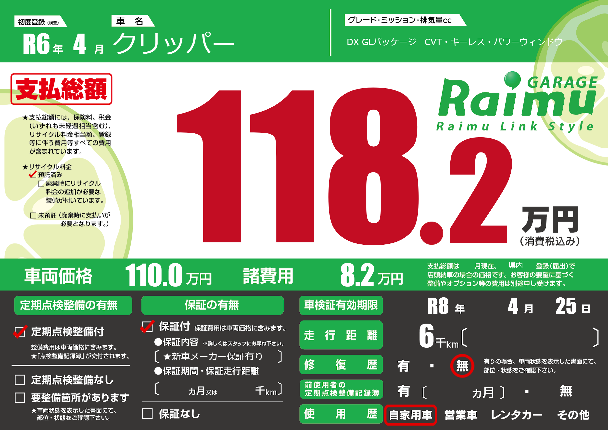 なし | 車検制限 | R8年4月25月 |