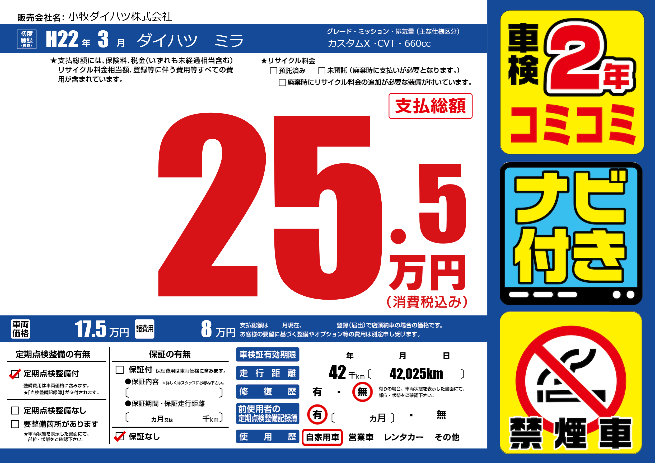 | 定期点検整備 | 定期点検整備あり | ||