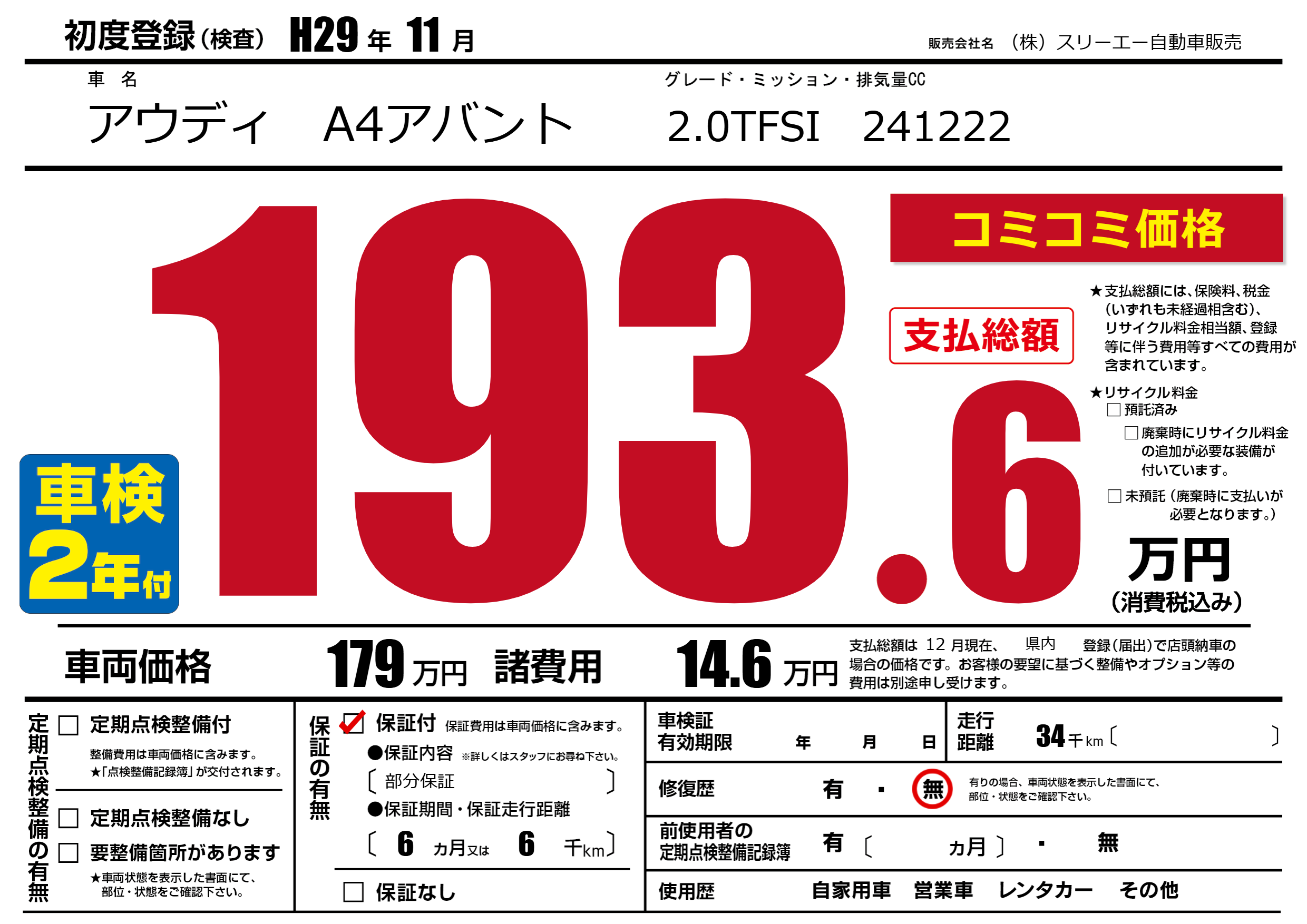 保証付き 保証内容(部分保証) 6ヶ月または(6)千kmまで |