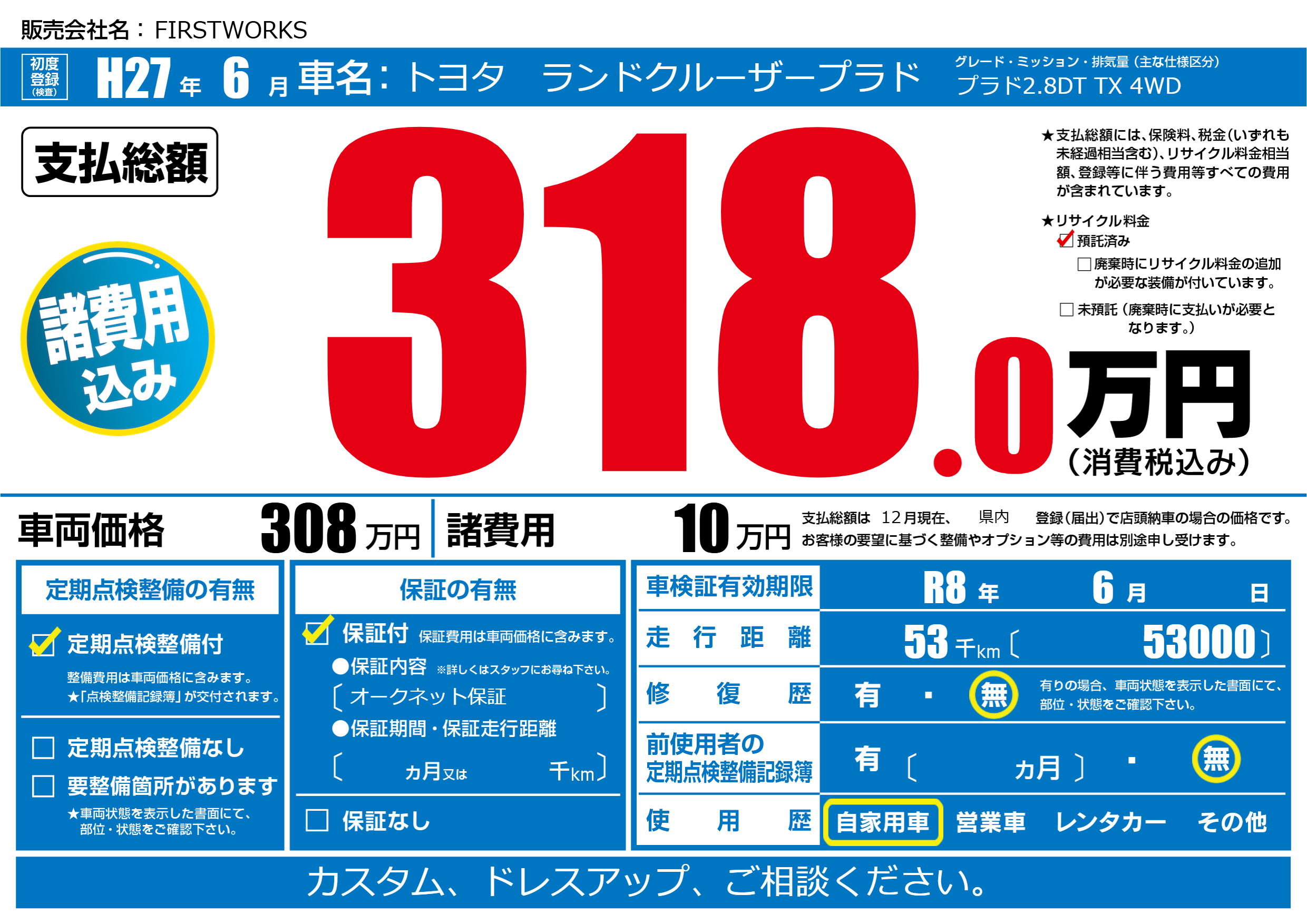 | 車検制限 | R8年 6月 - 日 | ||