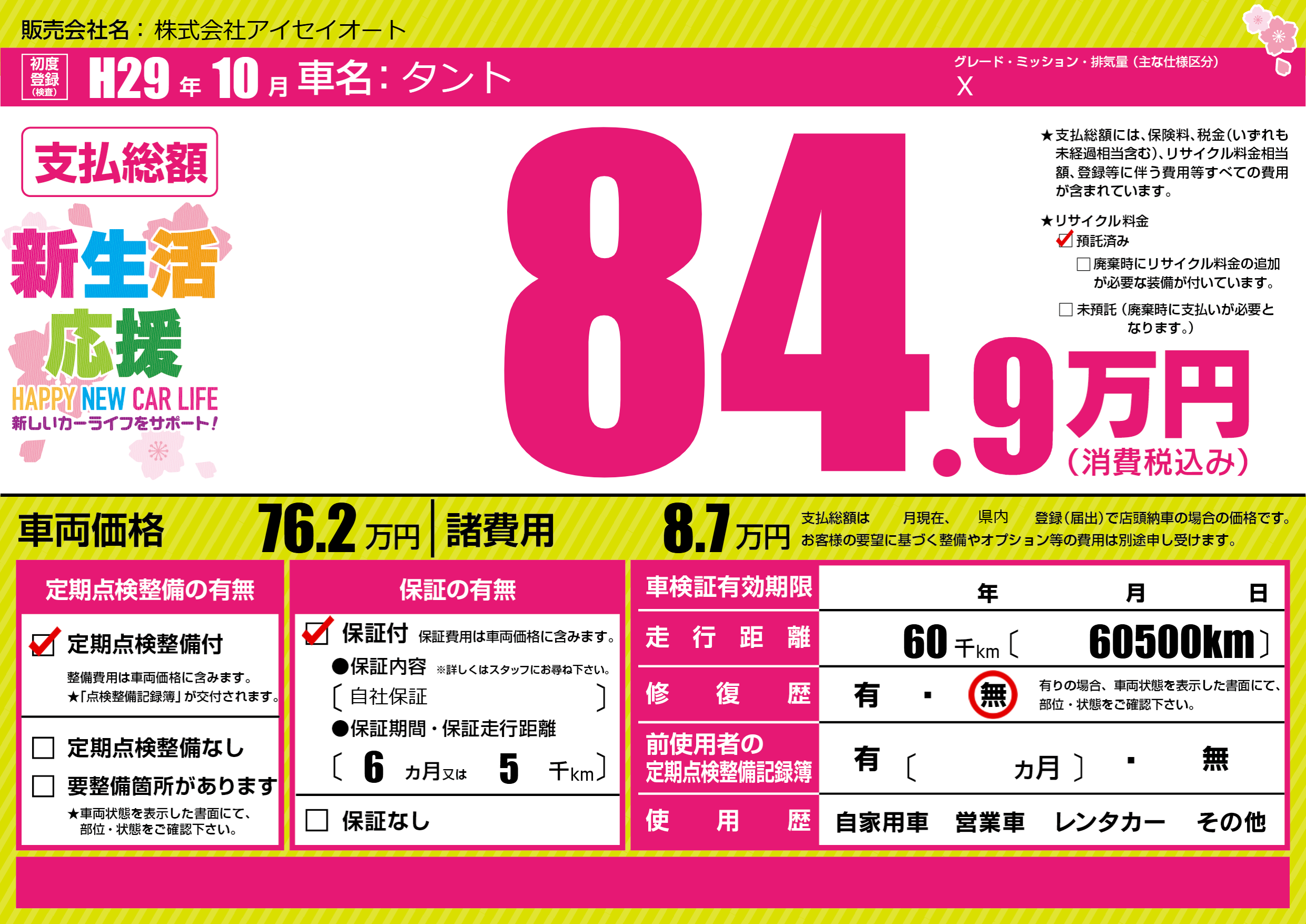 | 定期点検整備 | 定期点検整備あり | ||