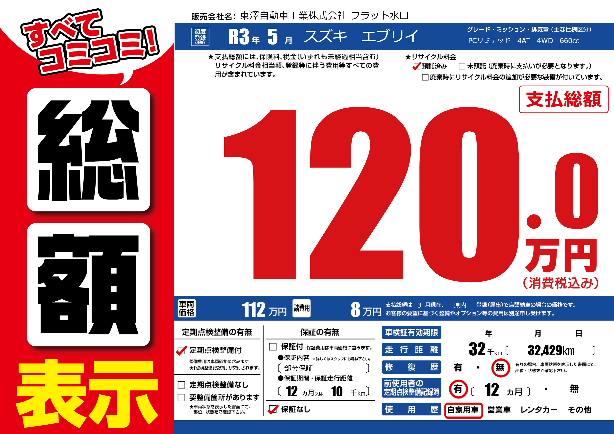 | 車名 | スズキ エブリイ | グレード ミッション 排気量 |