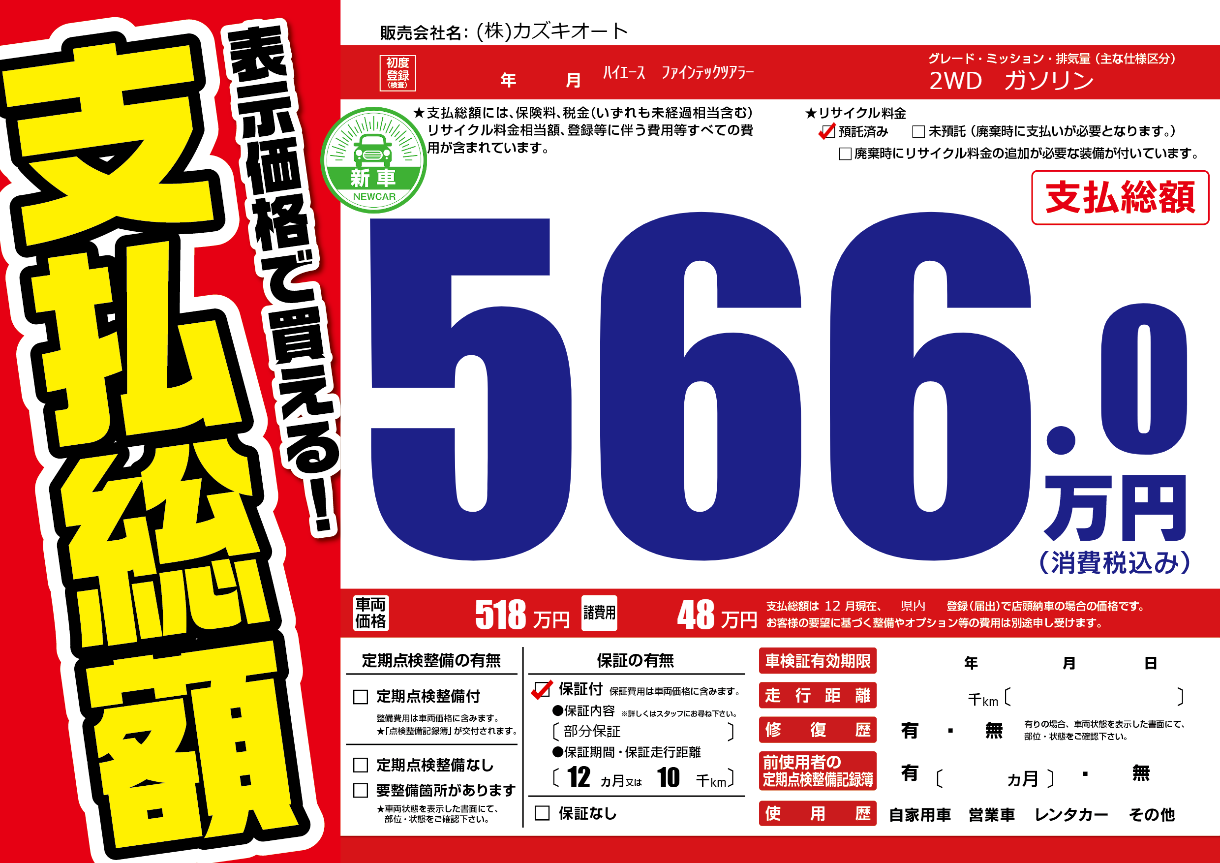 保証付き 保証内容(部分保証) 12ヶ月または(10)千kmまで |