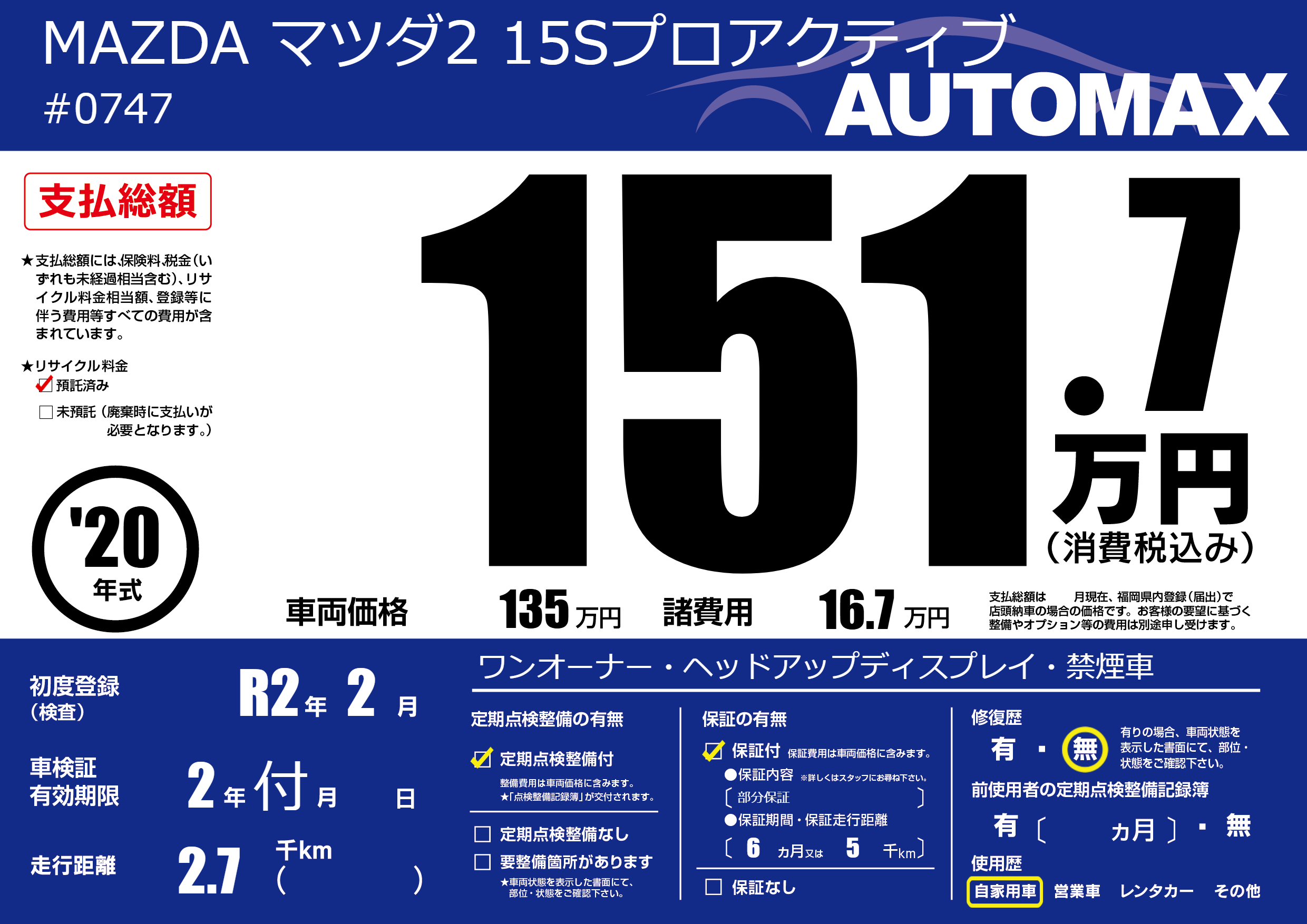 なし | 車検制限 | 2年付月---月 |