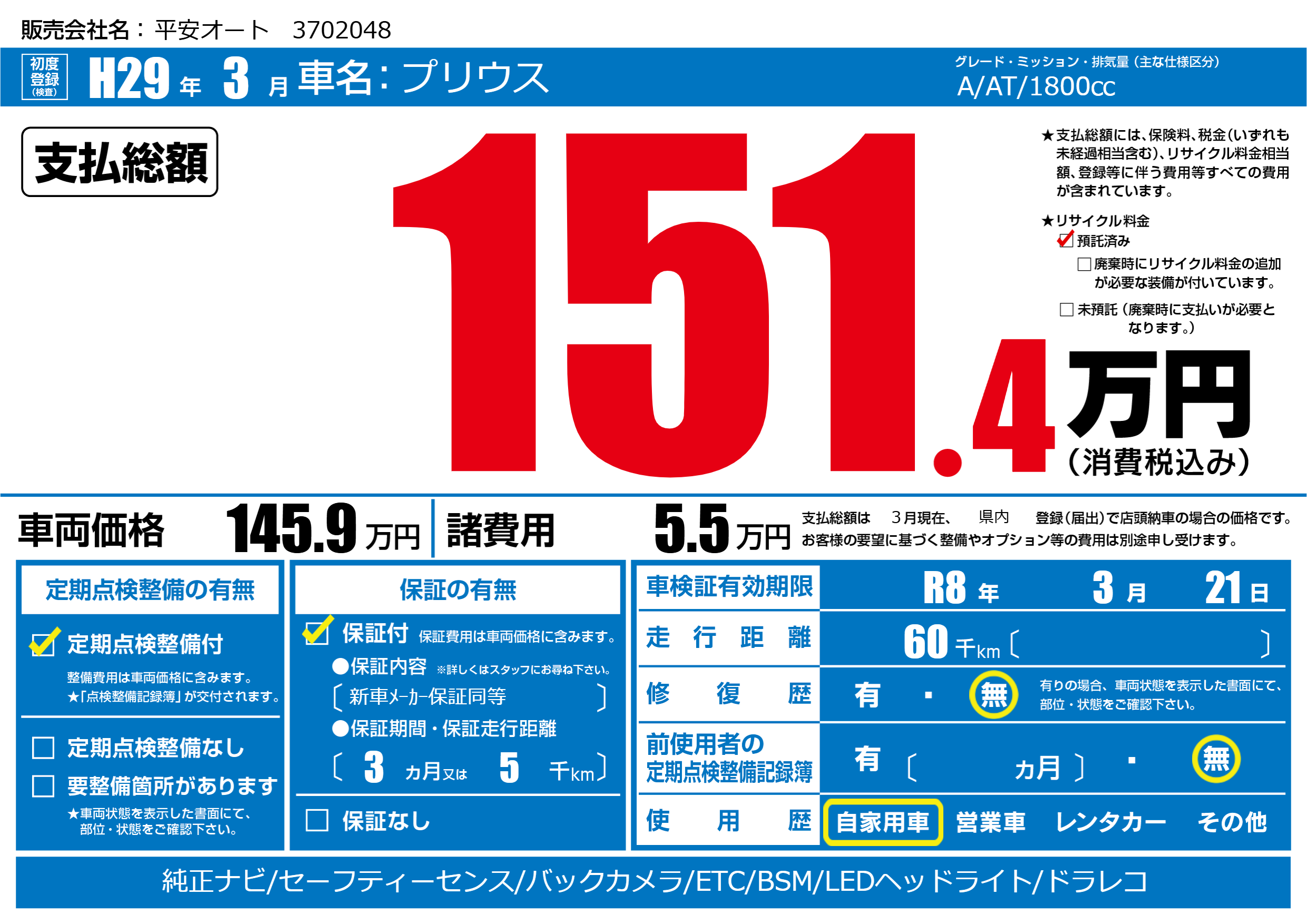 なし | 車検制限 | R8年3月21月 |