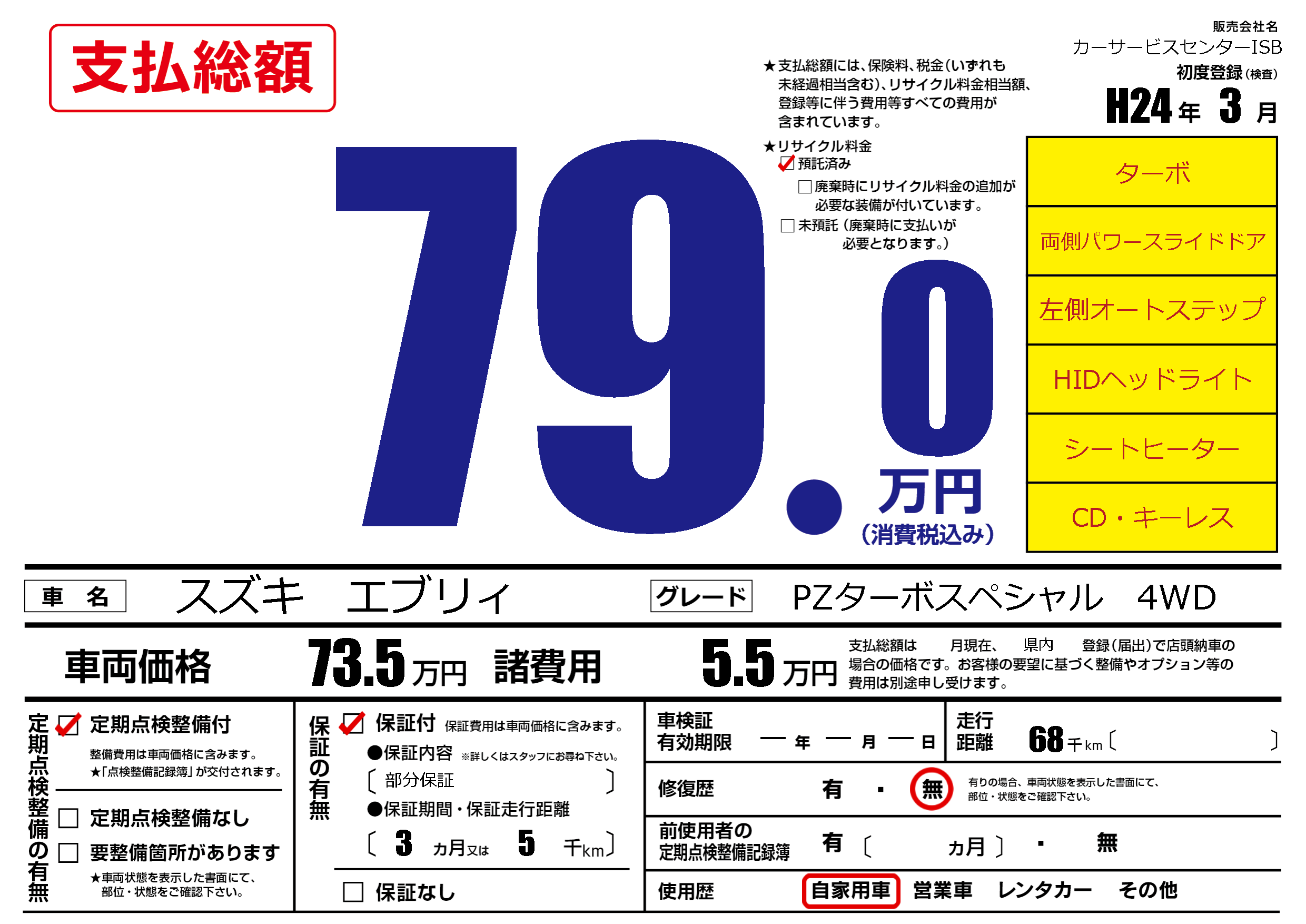 | 走行キロ | 6.8万km | 初年度登録 | H24年3月 |