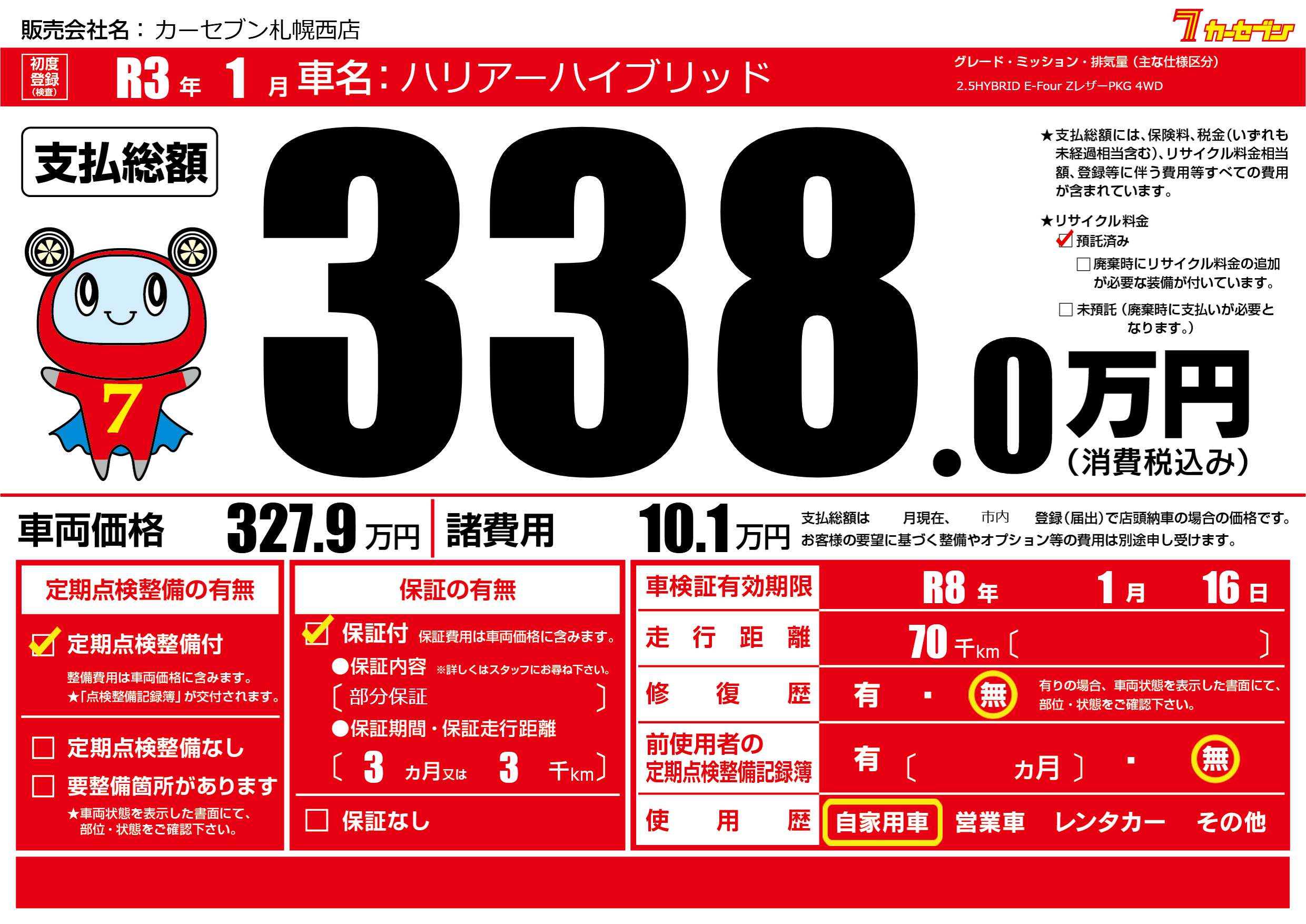 なし | 車検制限 | R8年1月16月 |