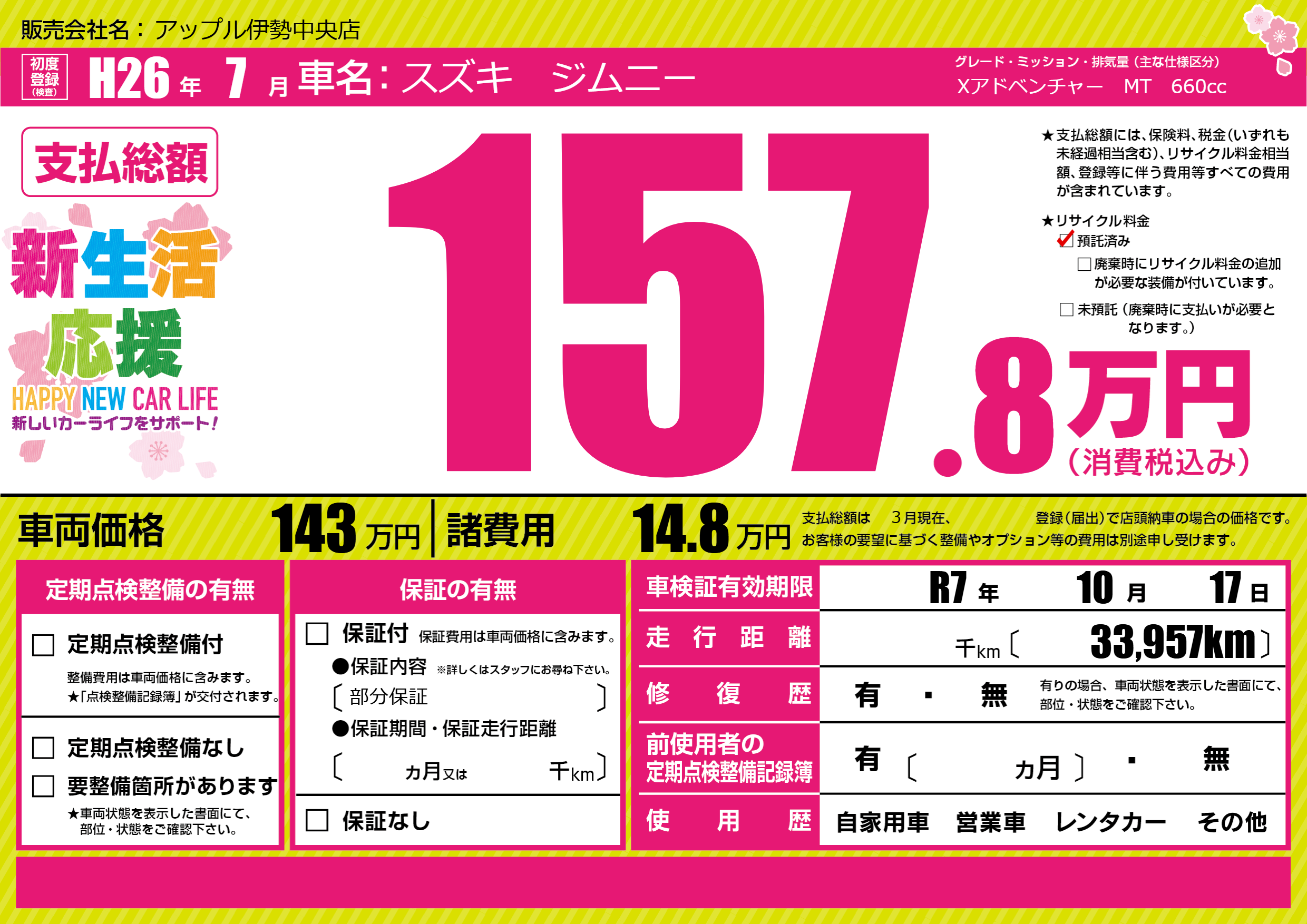 なし | 車検制限 | R7年10月17月 |