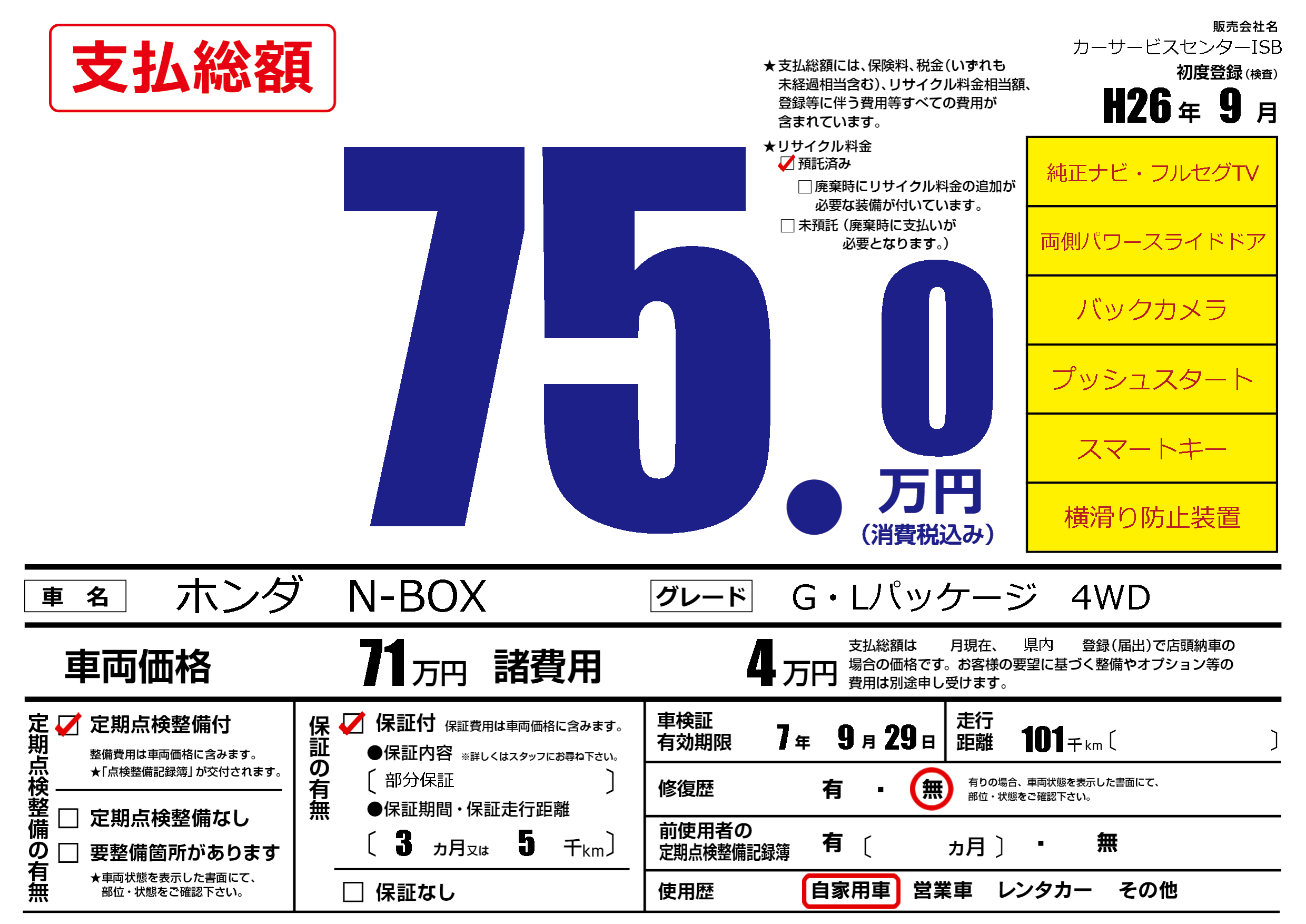 | 走行キロ | 10.1万km | 初年度登録 | H26年9月 |