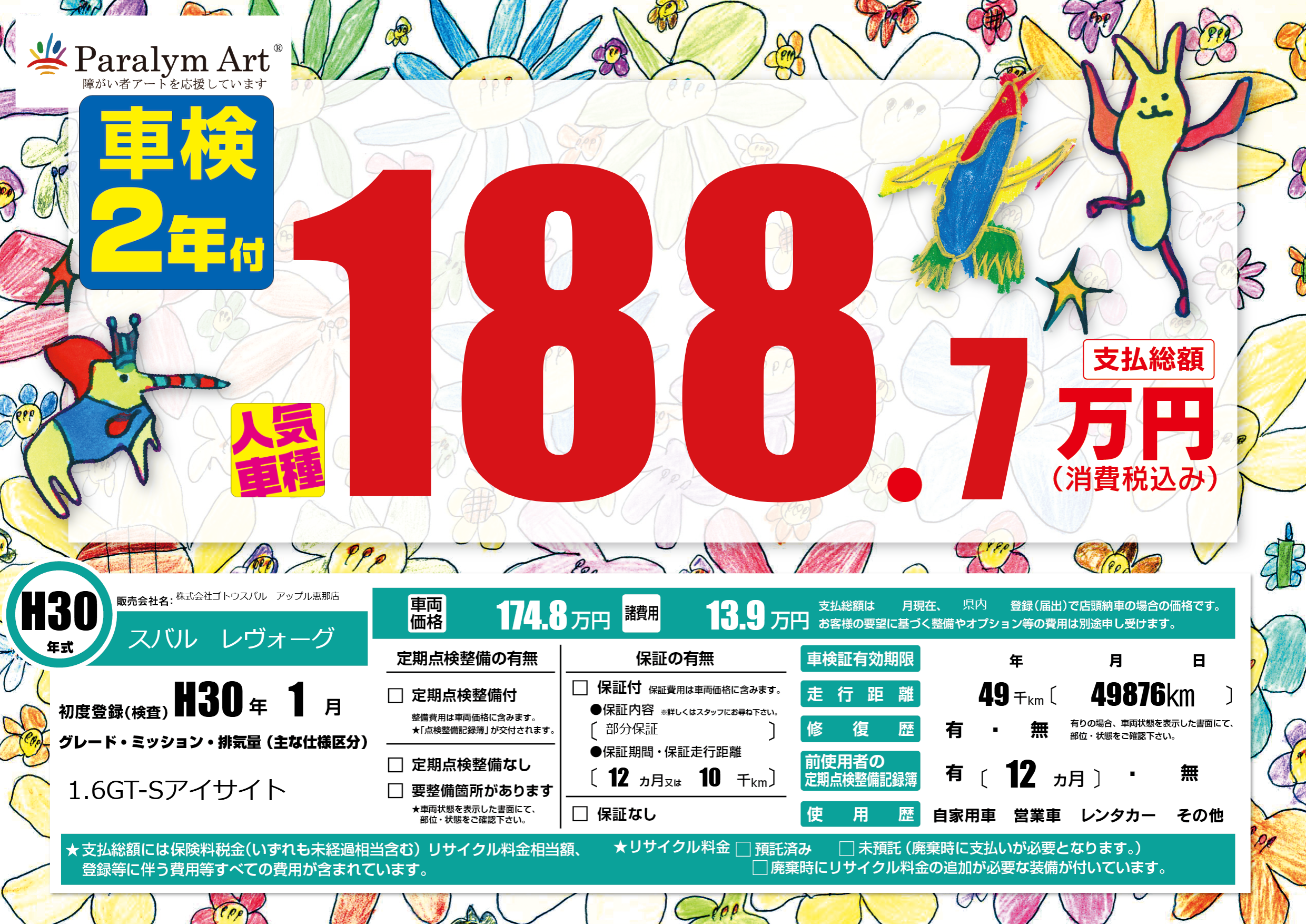 | 車名 | スバル レヴォーグ | グレード ミッション 排気量 |