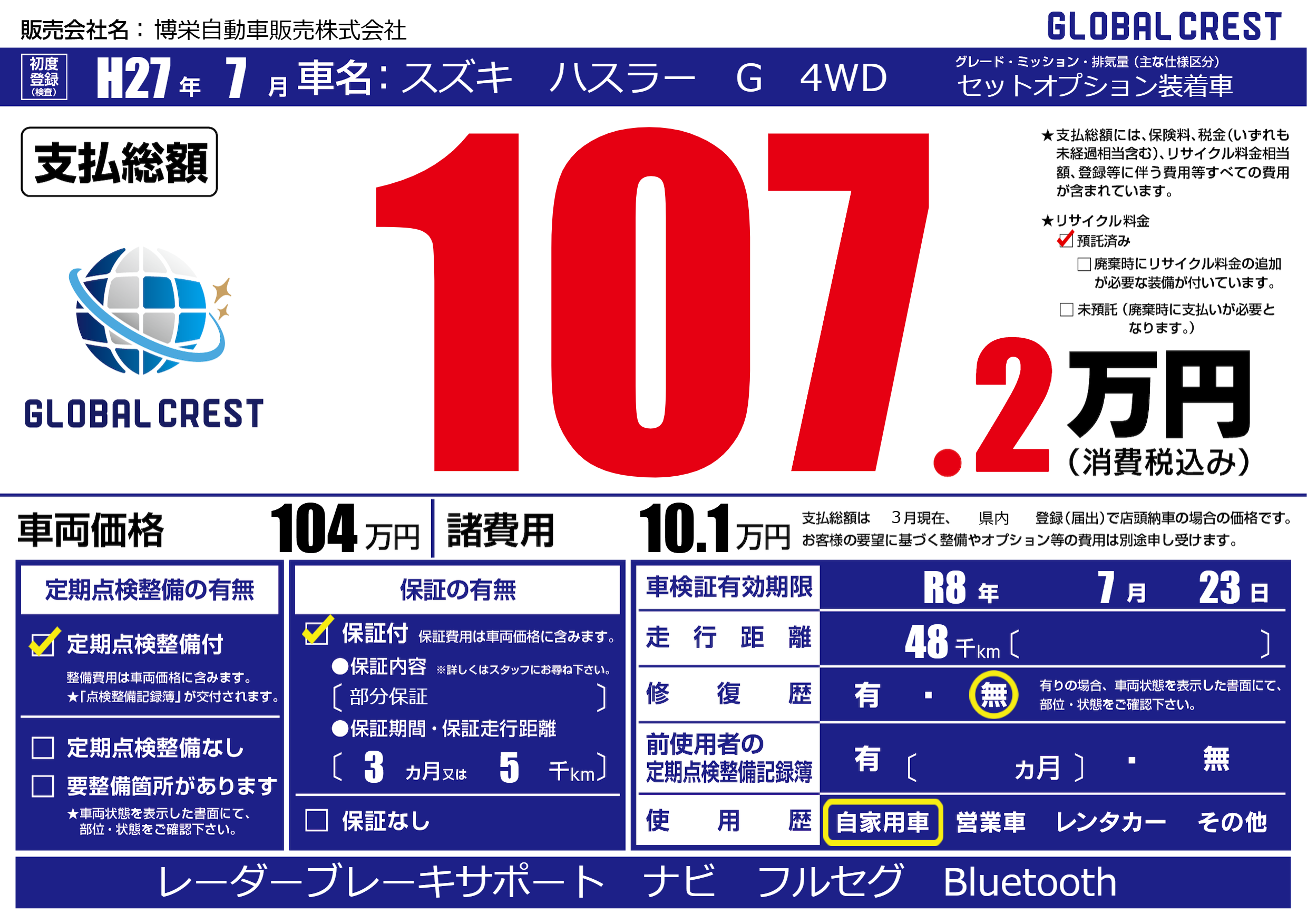 なし | 車検制限 | R8年7月23月 |