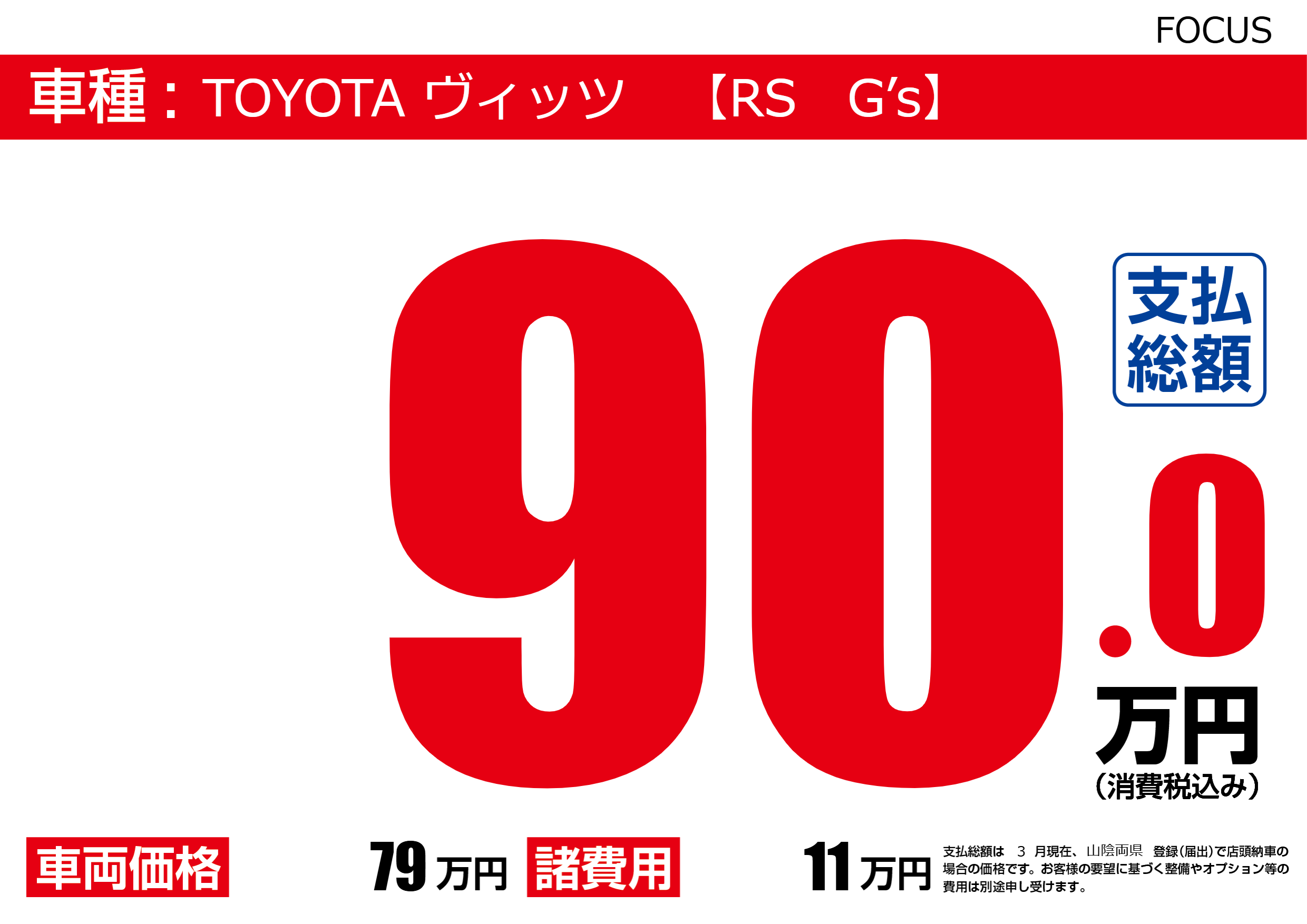 | 車名 | TOYOTA ヴィッツ 【RS G’s】 | グレード ミッション 排気量 |