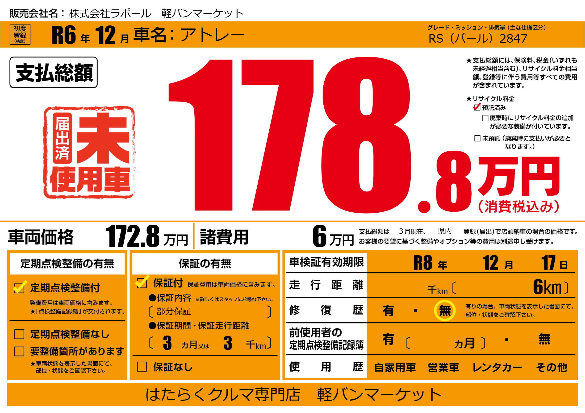 なし | 車検制限 | R8年12月17月 |