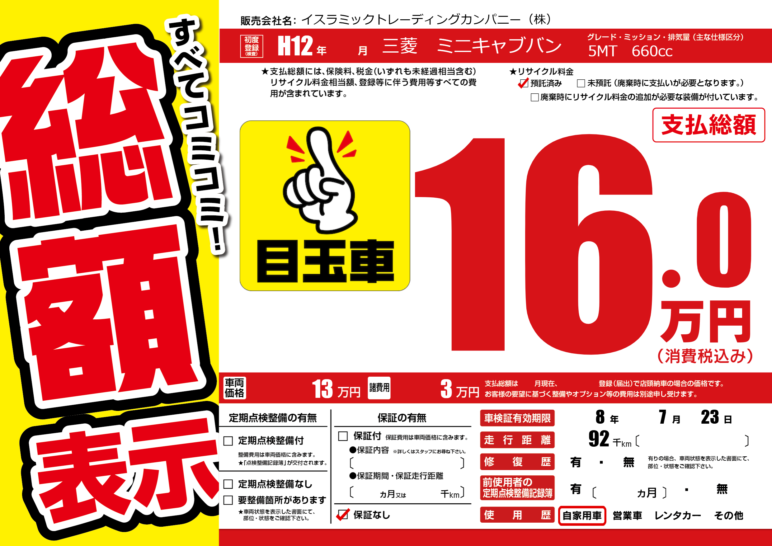 | 車検制限 | 8年 7月 23日 | ||