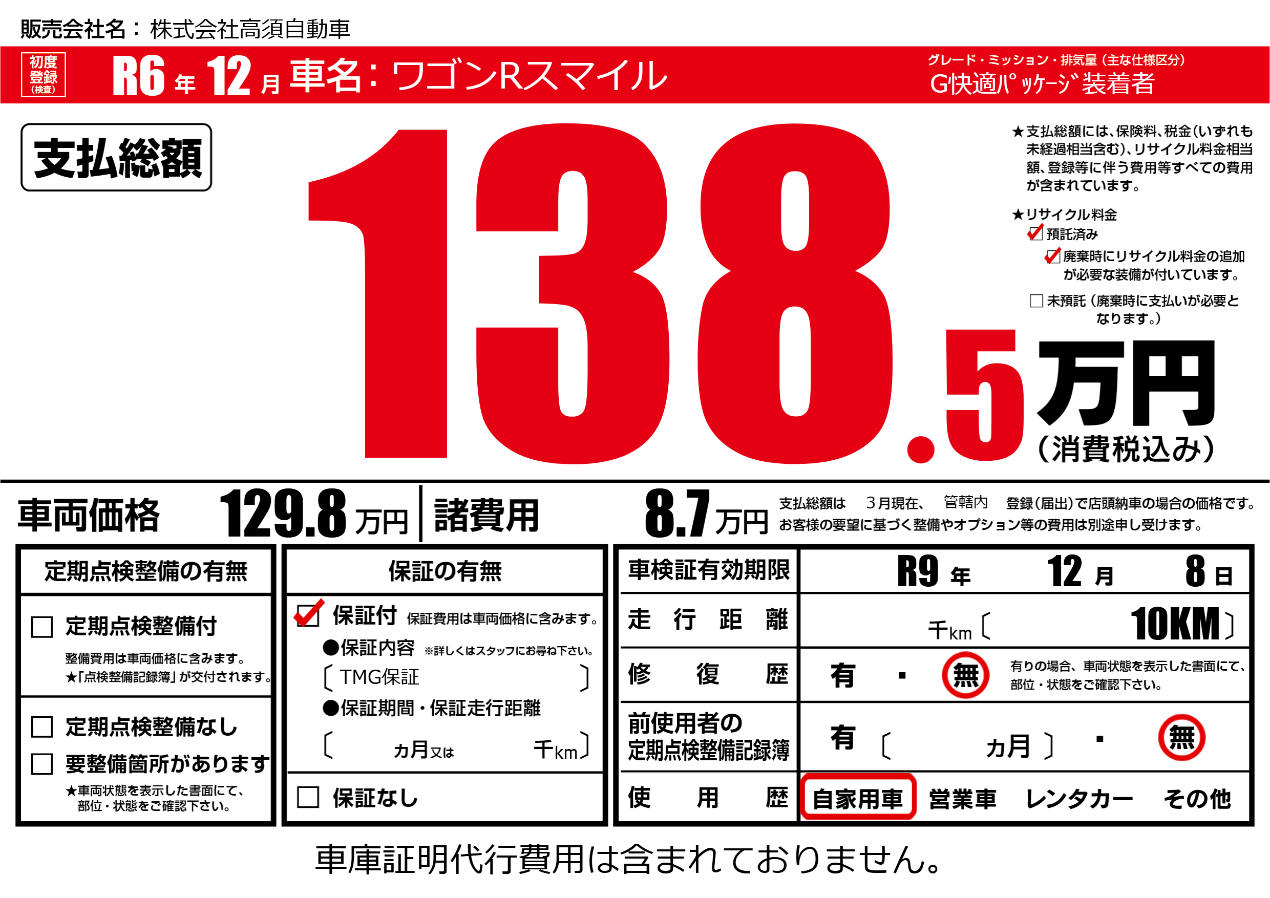 なし | 車検制限 | R9年12月8月 |