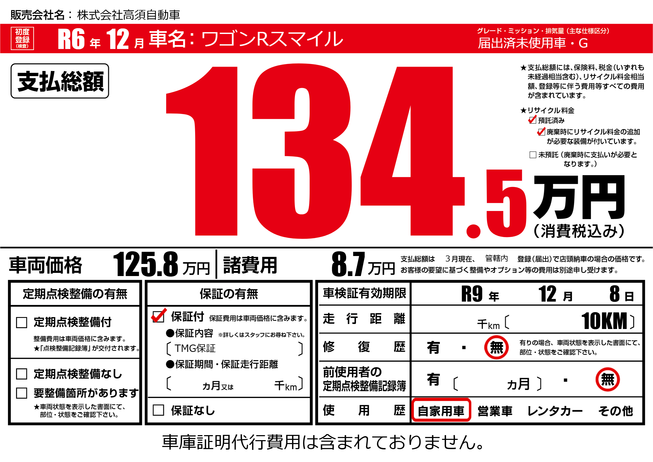 | 車名 | ワゴンRスマイル | グレード ミッション 排気量 |