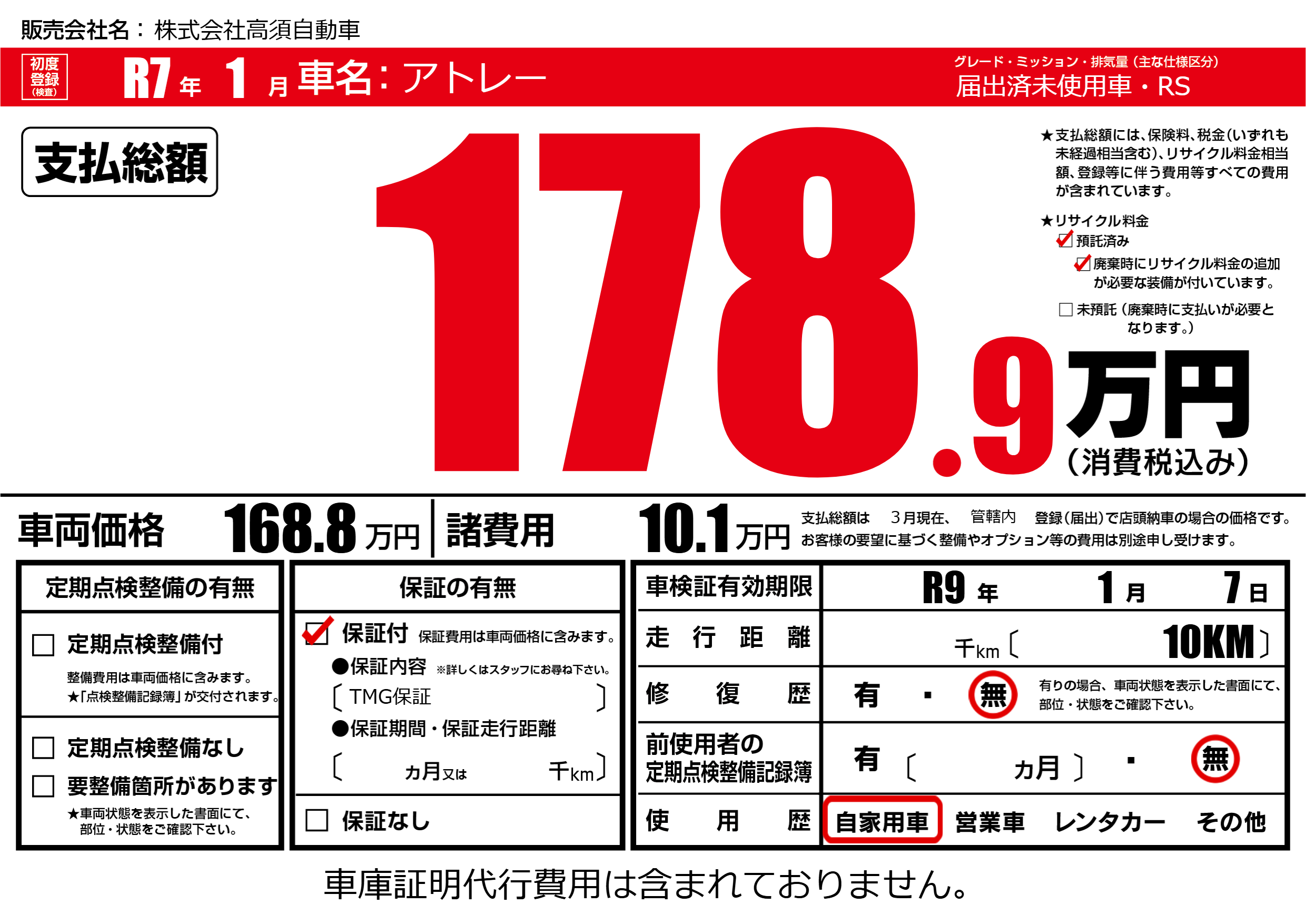 車検制限 R9年 1月 7日