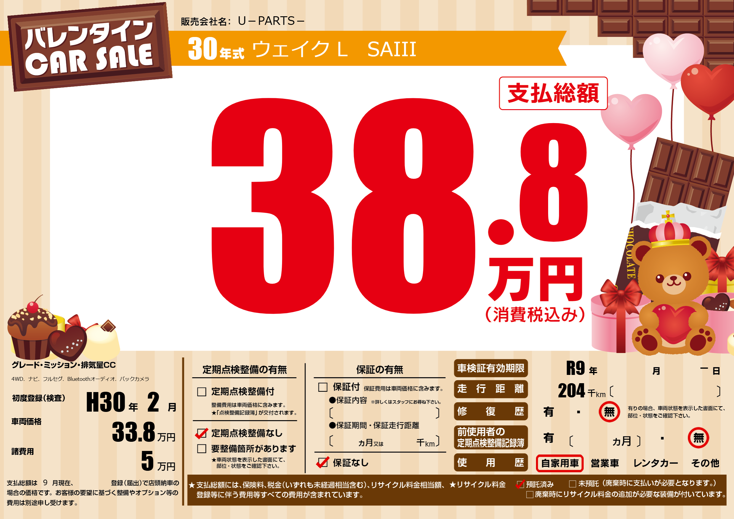 | 車名 | ウェイク L SAIII | グレード ミッション 排気量 |