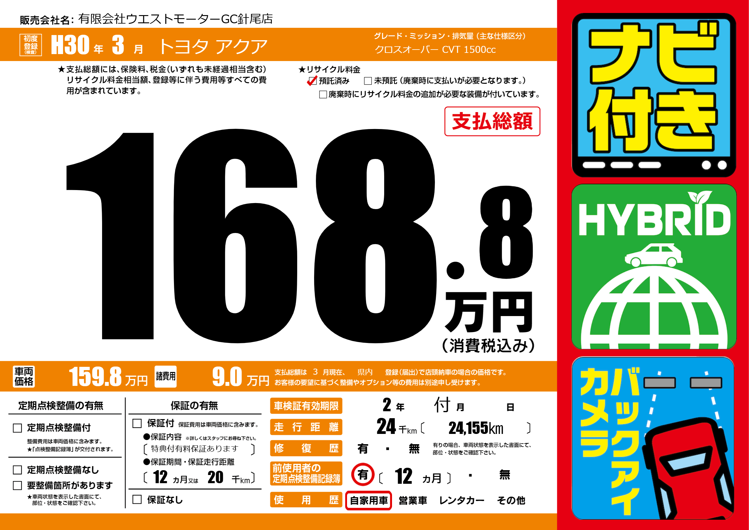 なし | 車検制限 | 2年付月---月 |