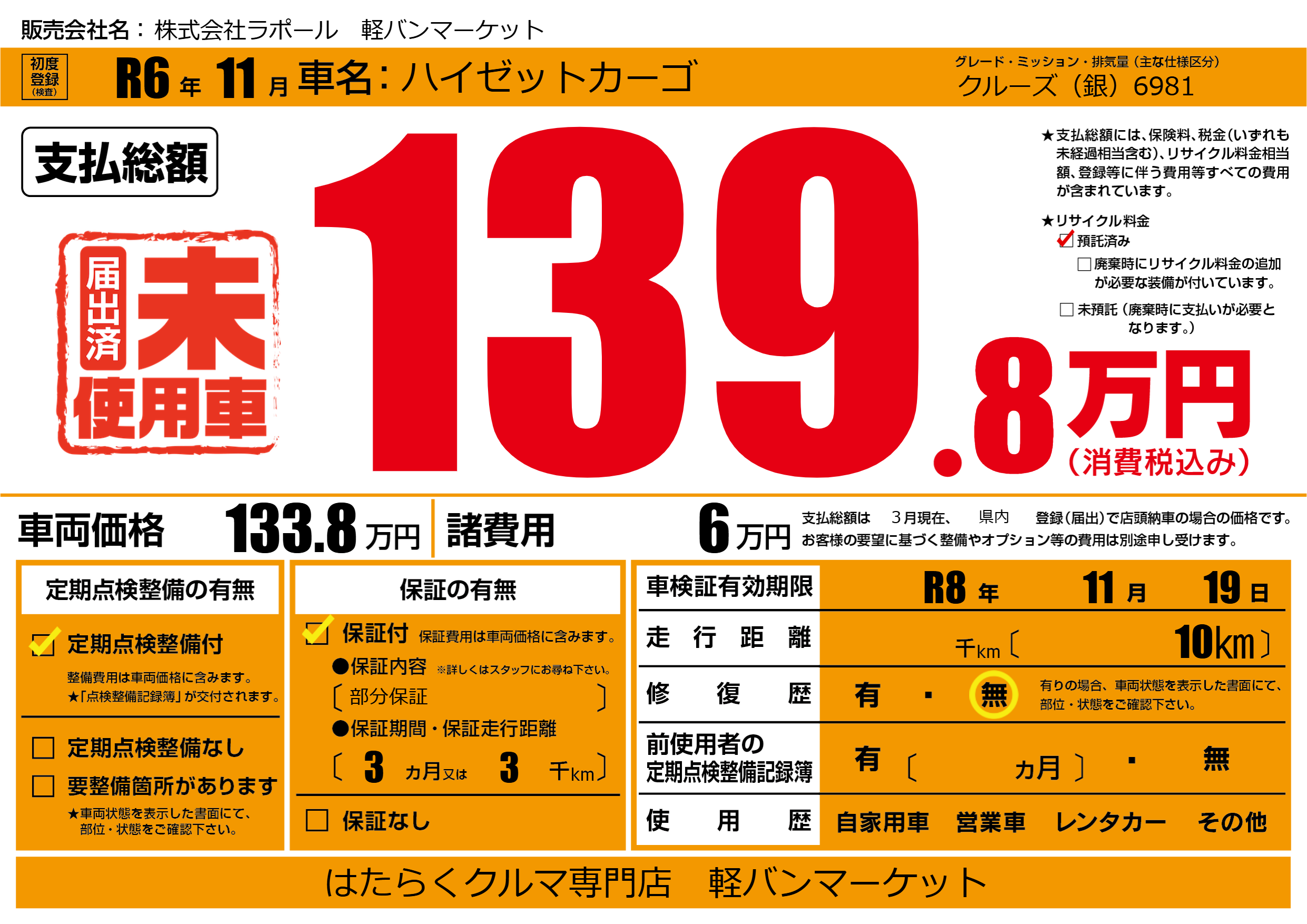 | 走行キロ | - | 初年度登録 | R6年11月 |
