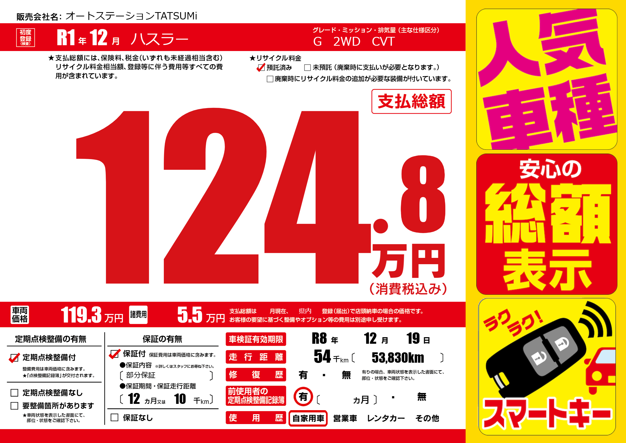 なし | 車検制限 | R8年12月19月 |