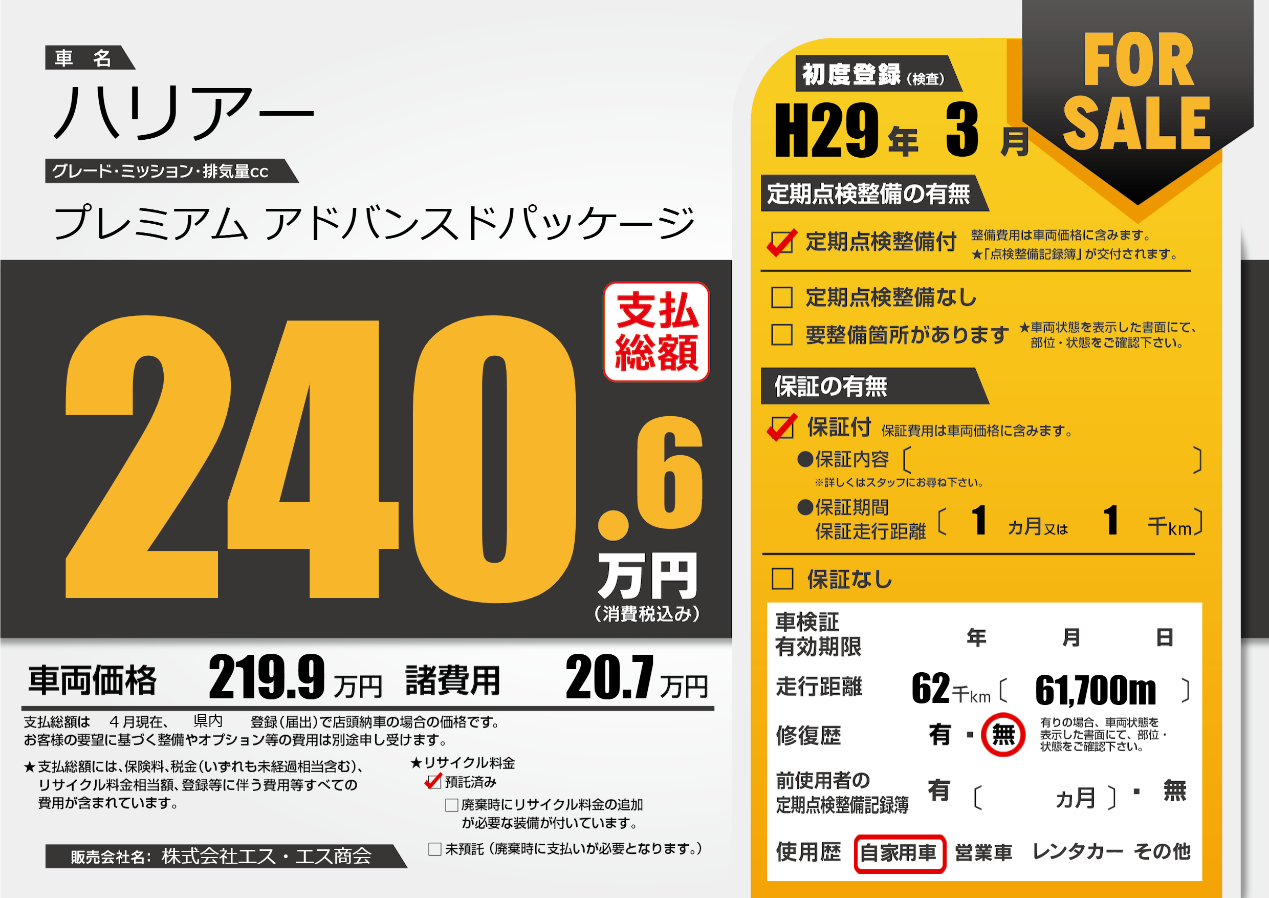 | 初年度登録 | H29年3月 | ||