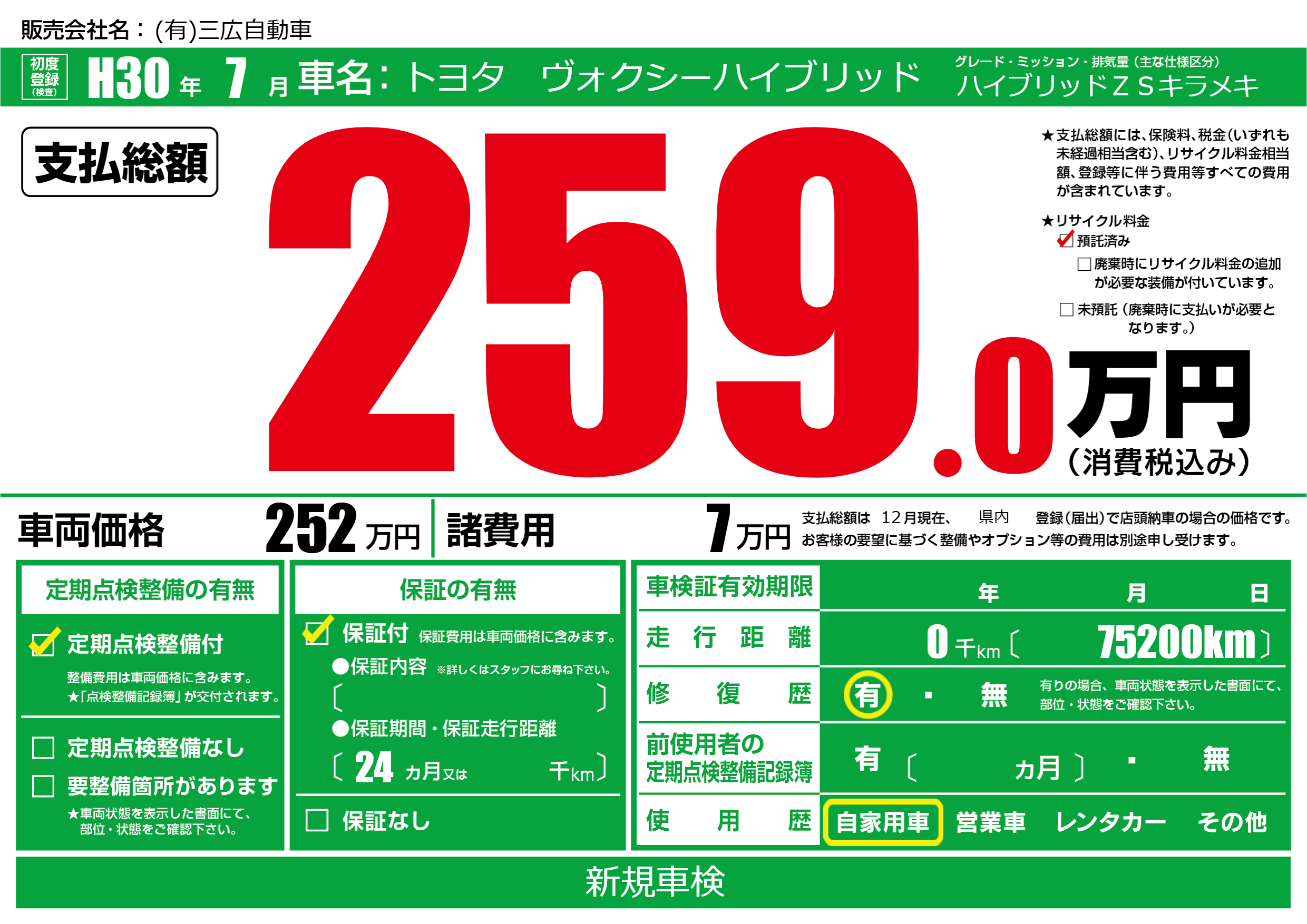 | 定期点検整備 | 定期点検整備あり | ||