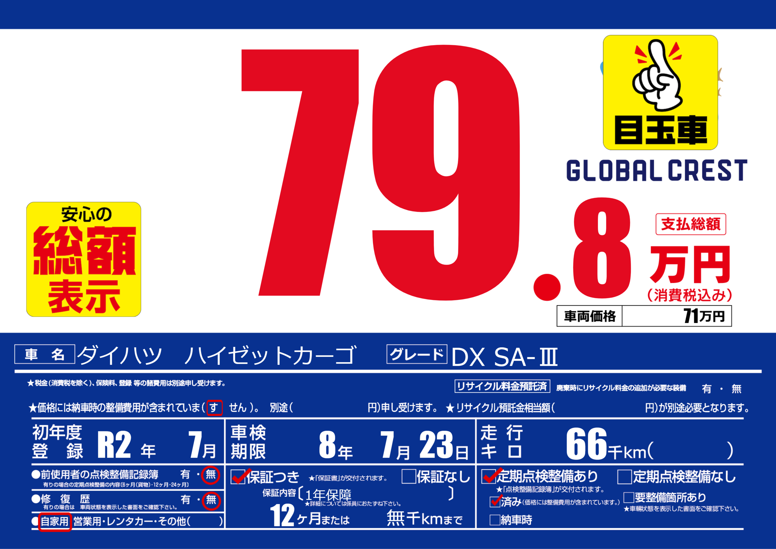 | 定期点検整備 | 定期点検整備あり 定期点検整備済み | ||