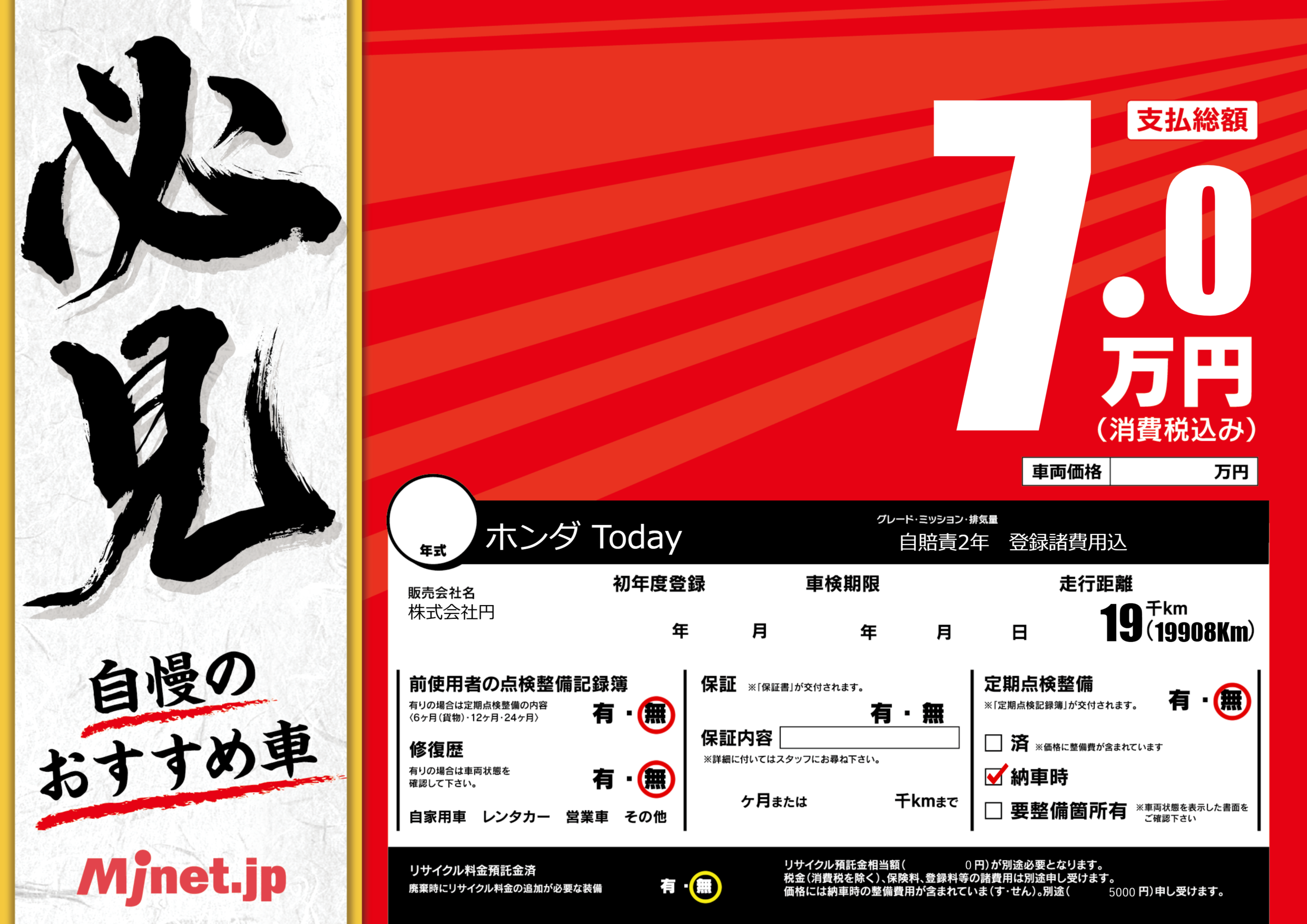 | 定期点検整備 | 定期点検整備なし 納車時あり | ||