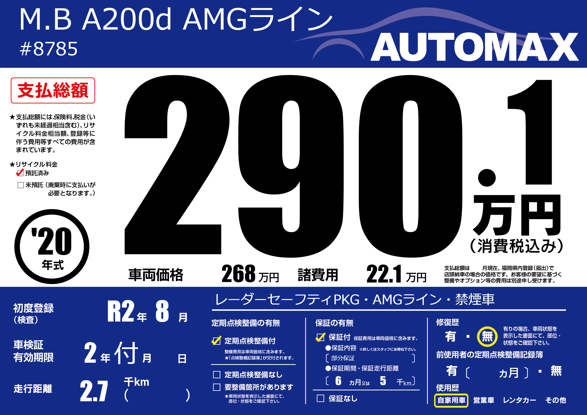 | 車名 | M.B A200d AMGライン | グレード ミッション 排気量 |