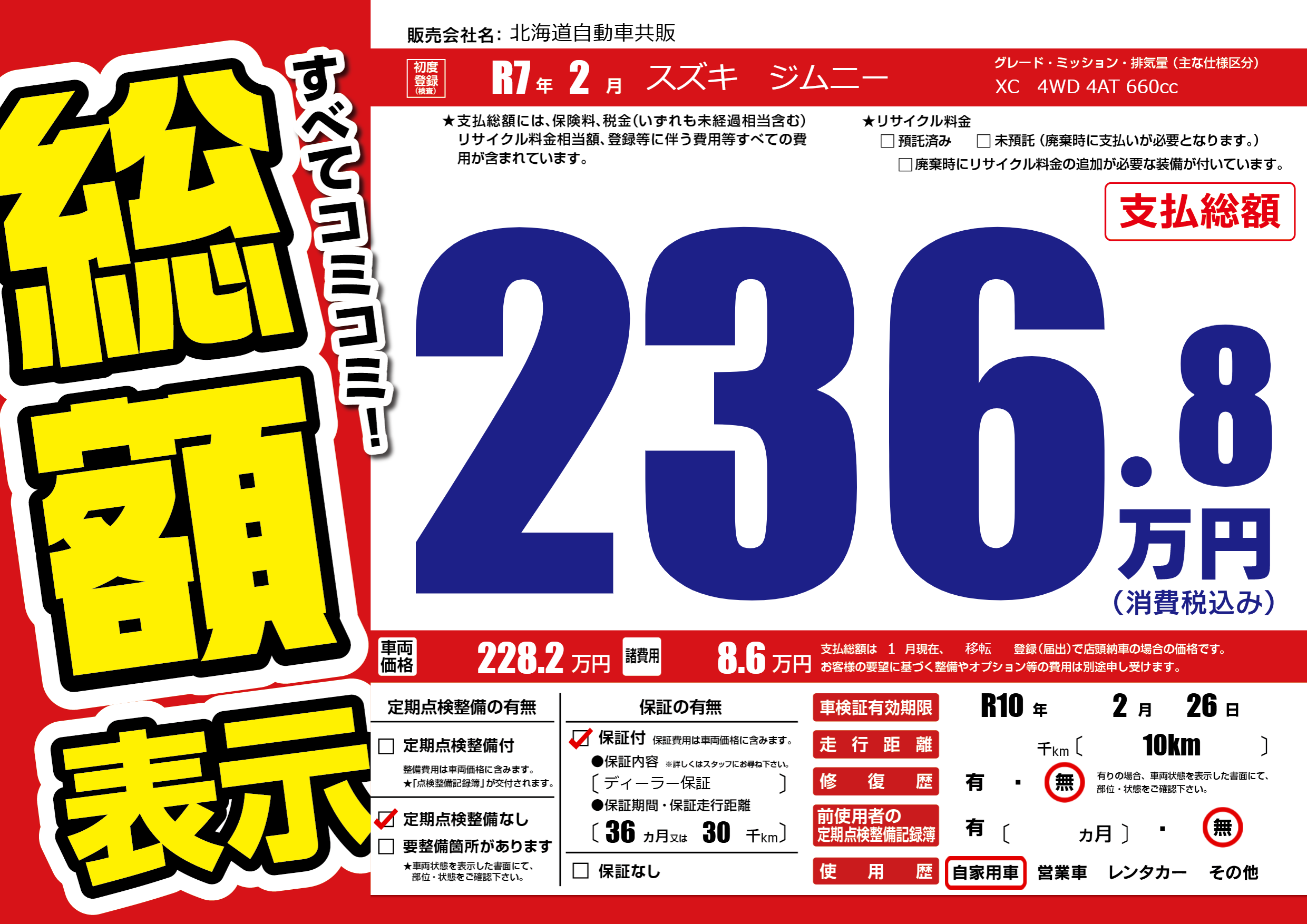 | 走行キロ | - | 初年度登録 | R7年2月 |