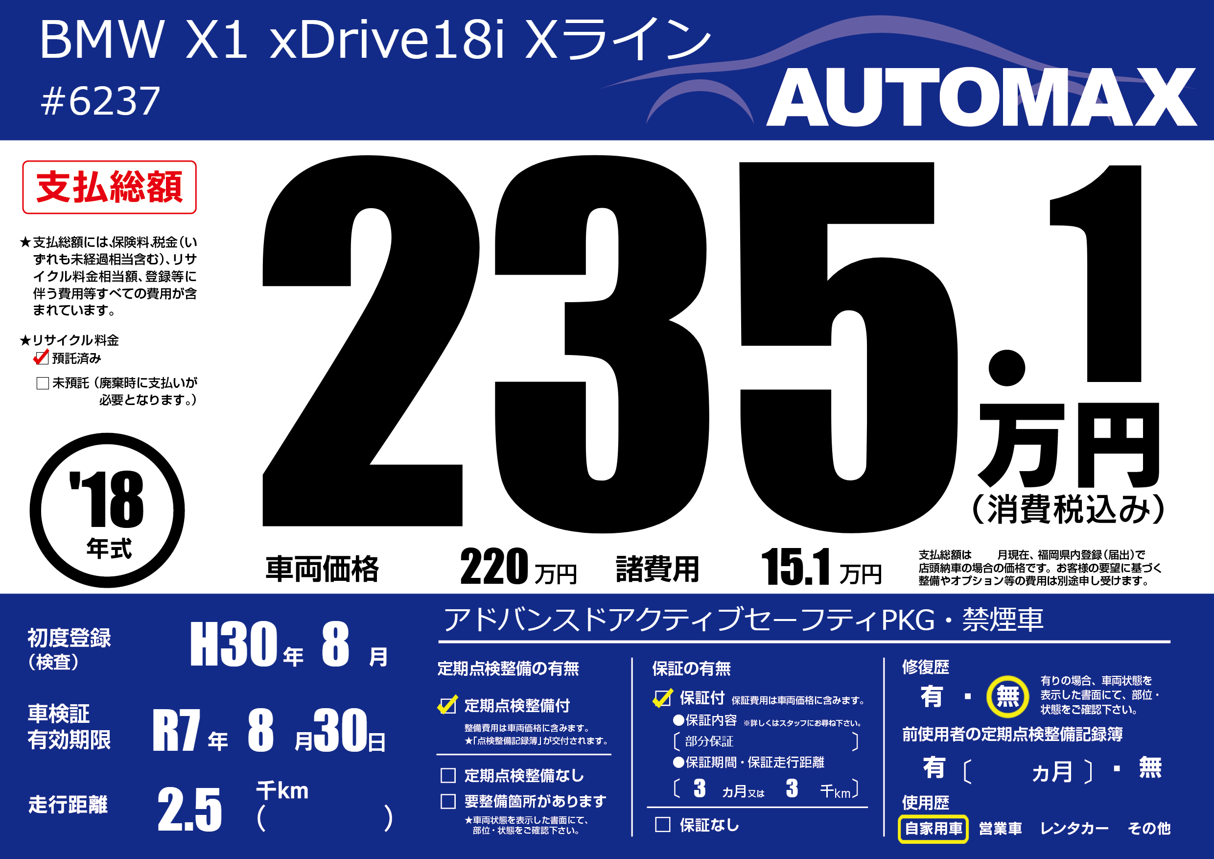 | 初年度登録 | H30年8月 | ||