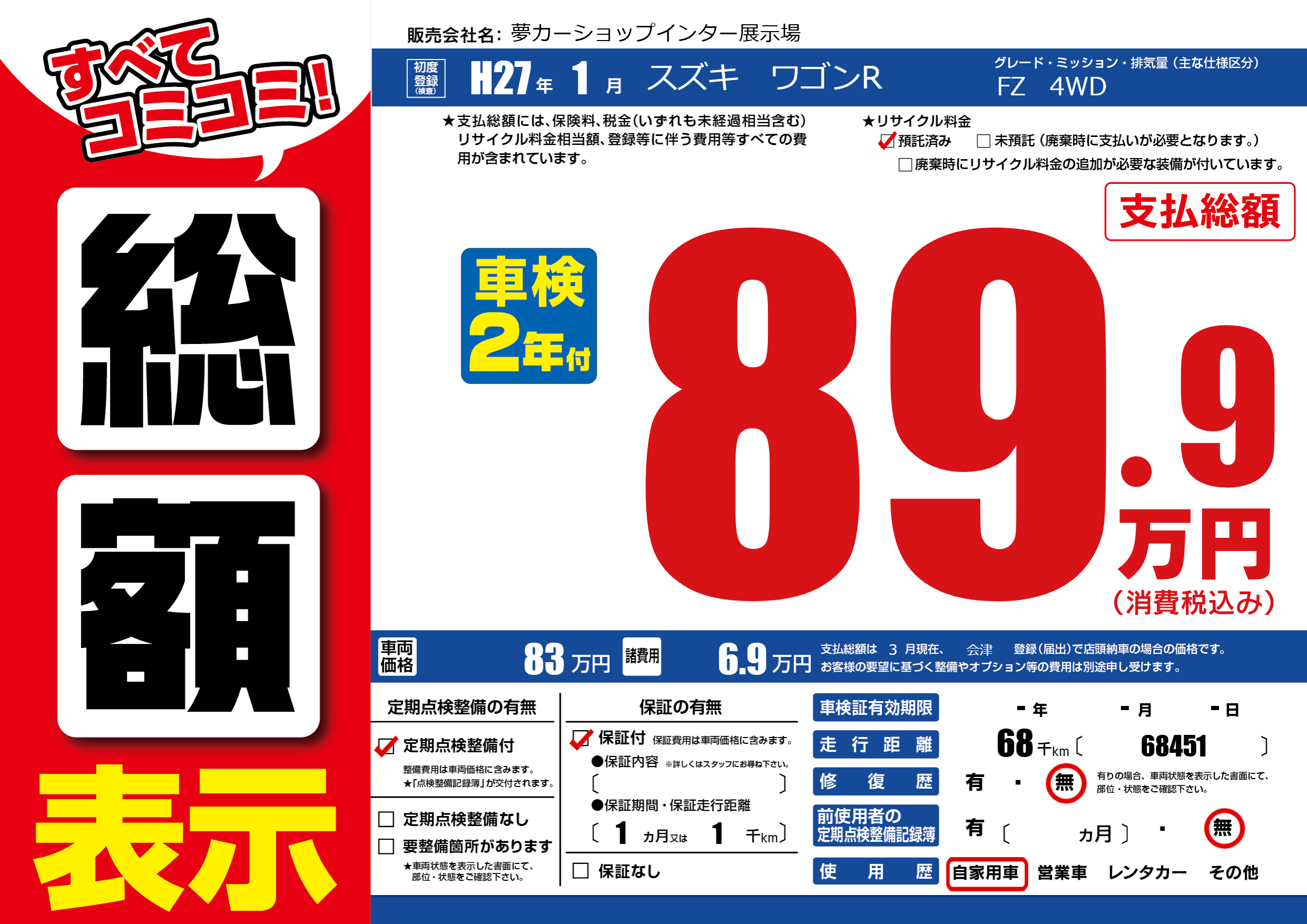 | 車名 | スズキ ワゴンR | グレード ミッション 排気量 |