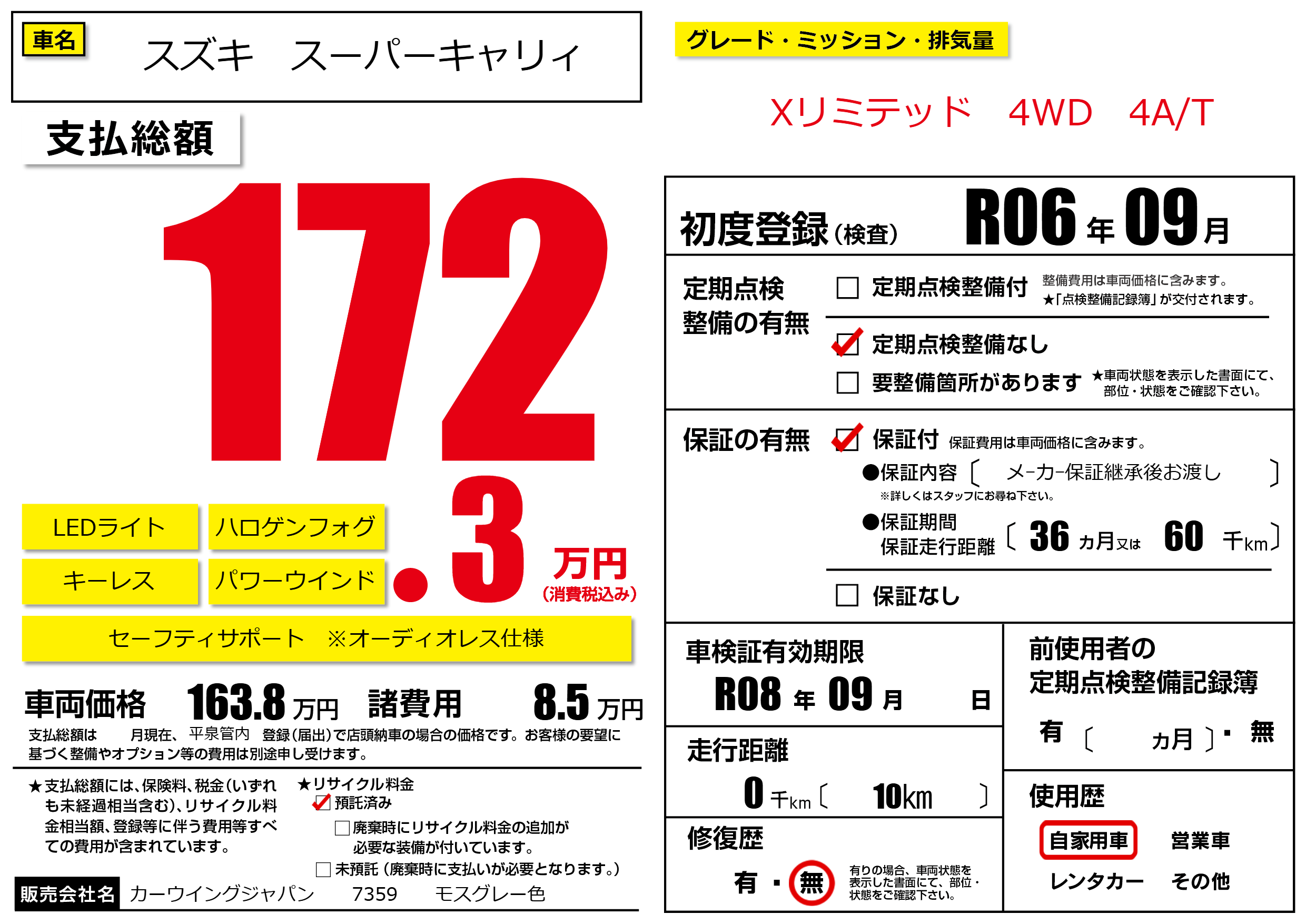 | 走行キロ | - | 初年度登録 | R06年09月 |