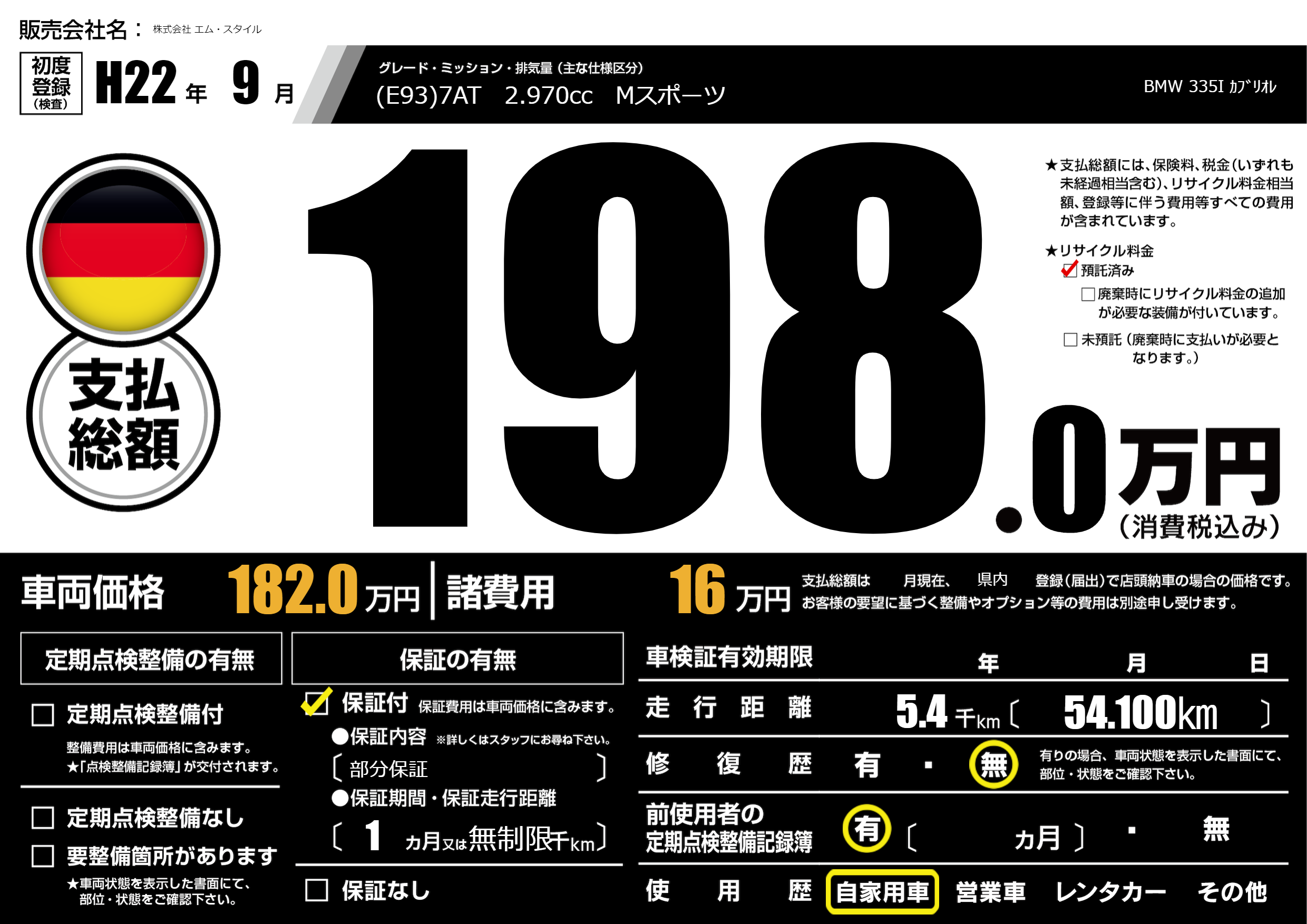 (E93)7AT 2.970cc Mスポーツ |