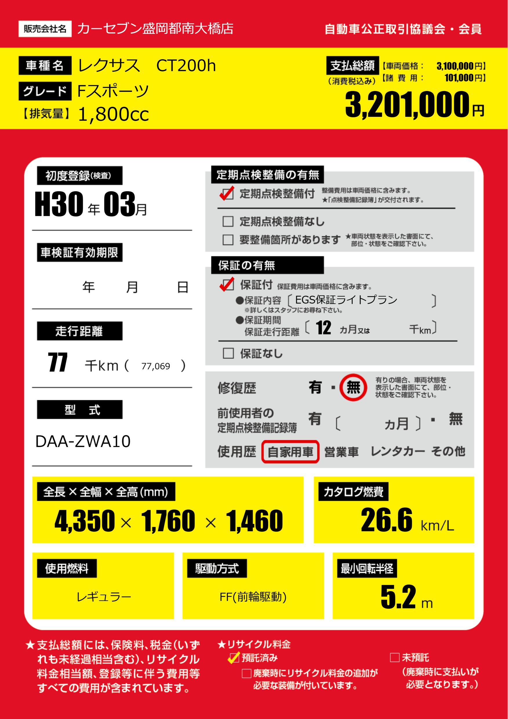 保証付き 保証内容(EGS保証ライトプラン) 12ヶ月または()千kmまで |