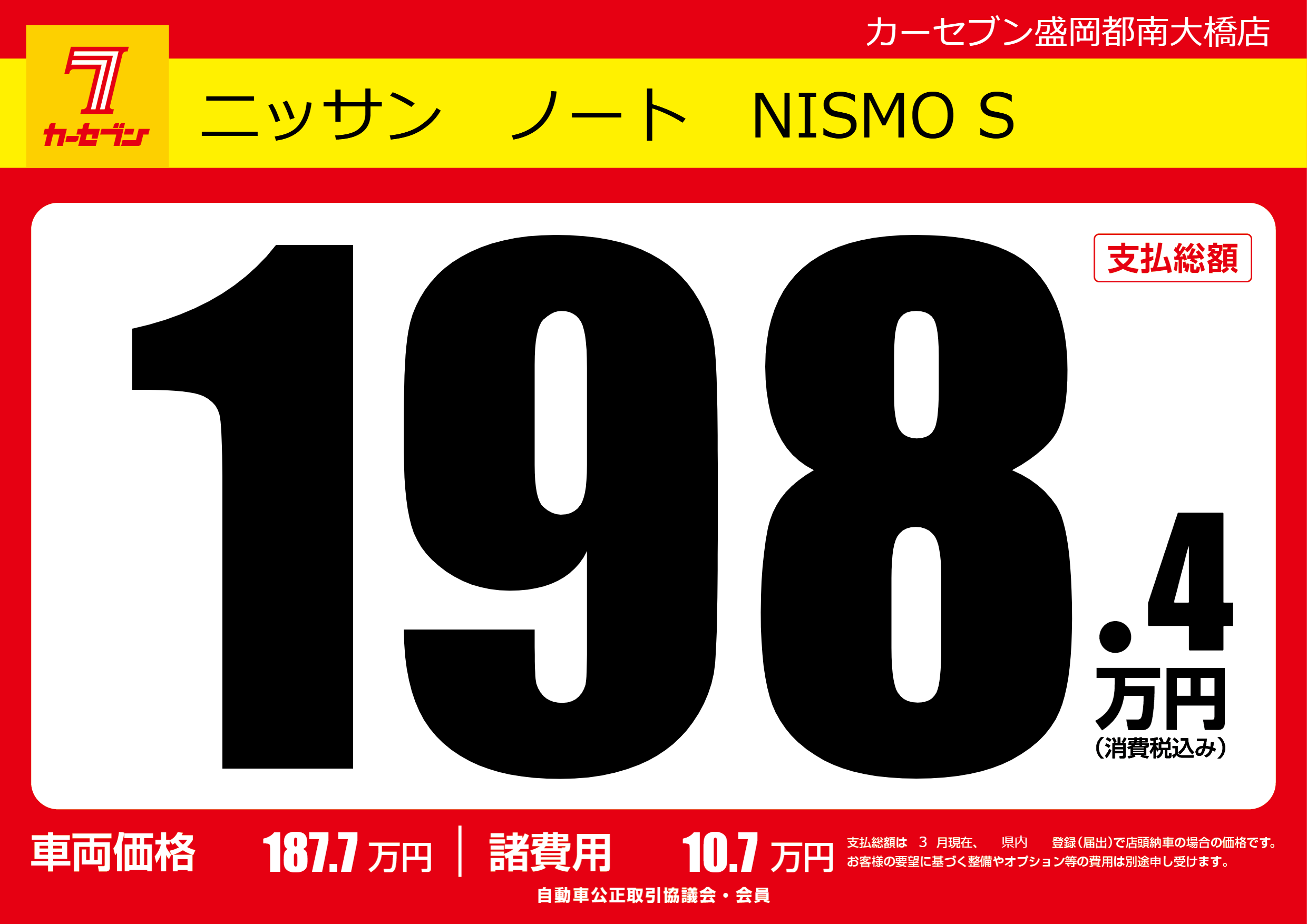 | 車名 | ニッサン ノート NISMO S | グレード ミッション 排気量 |