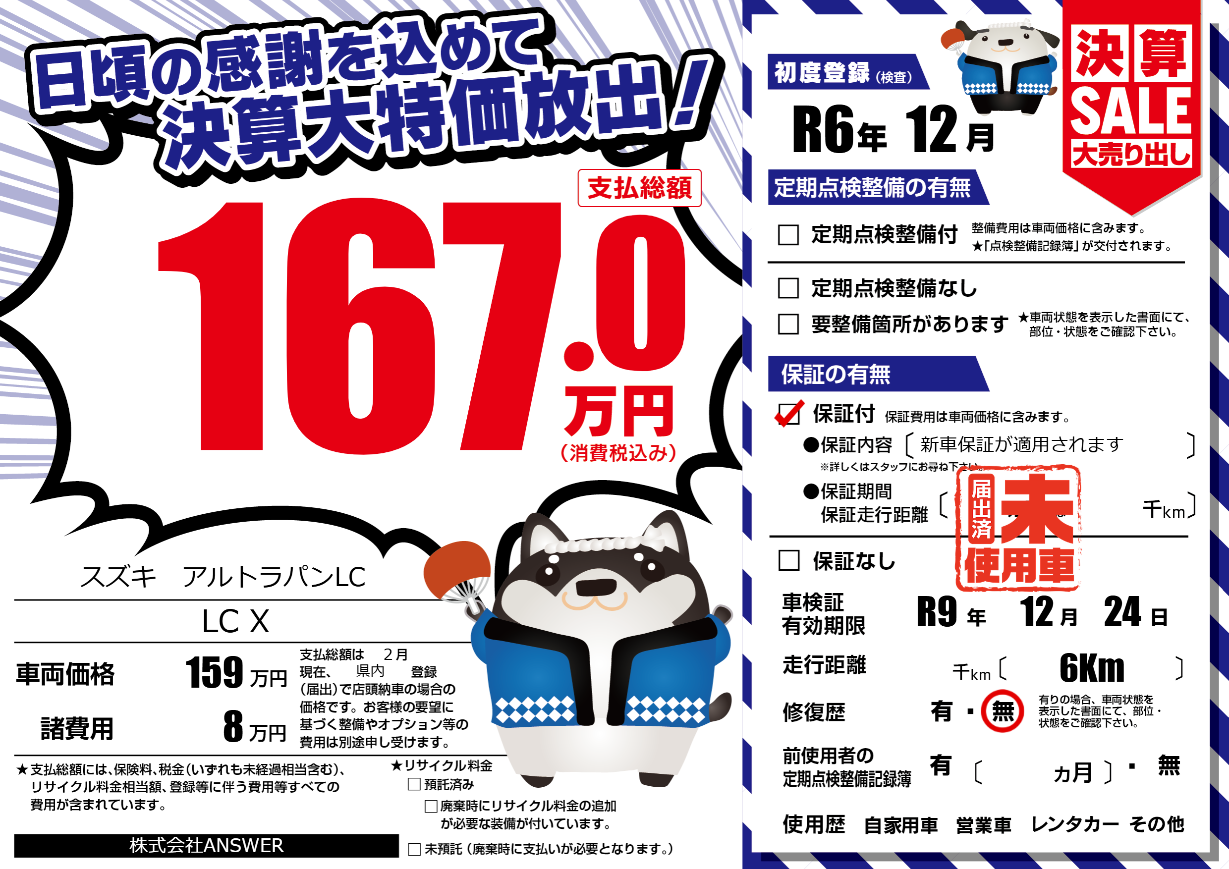 | 走行キロ | - | 初年度登録 | R6年12月 |