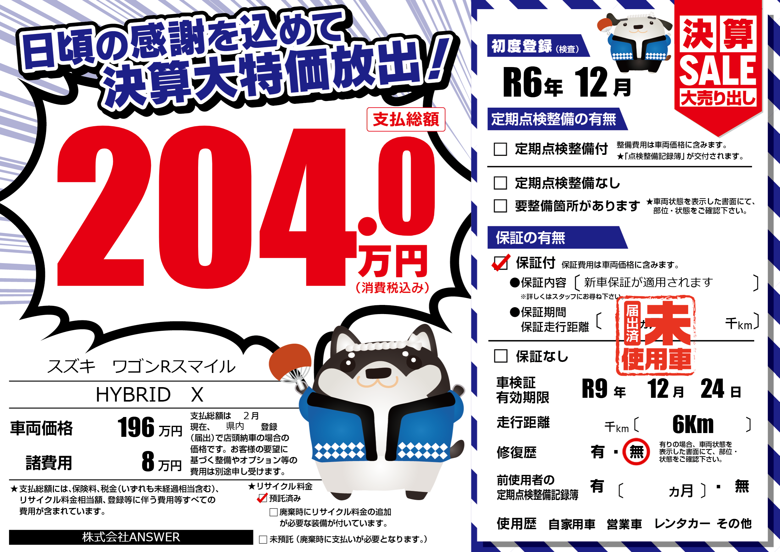 | 走行キロ | - | 初年度登録 | R6年12月 |